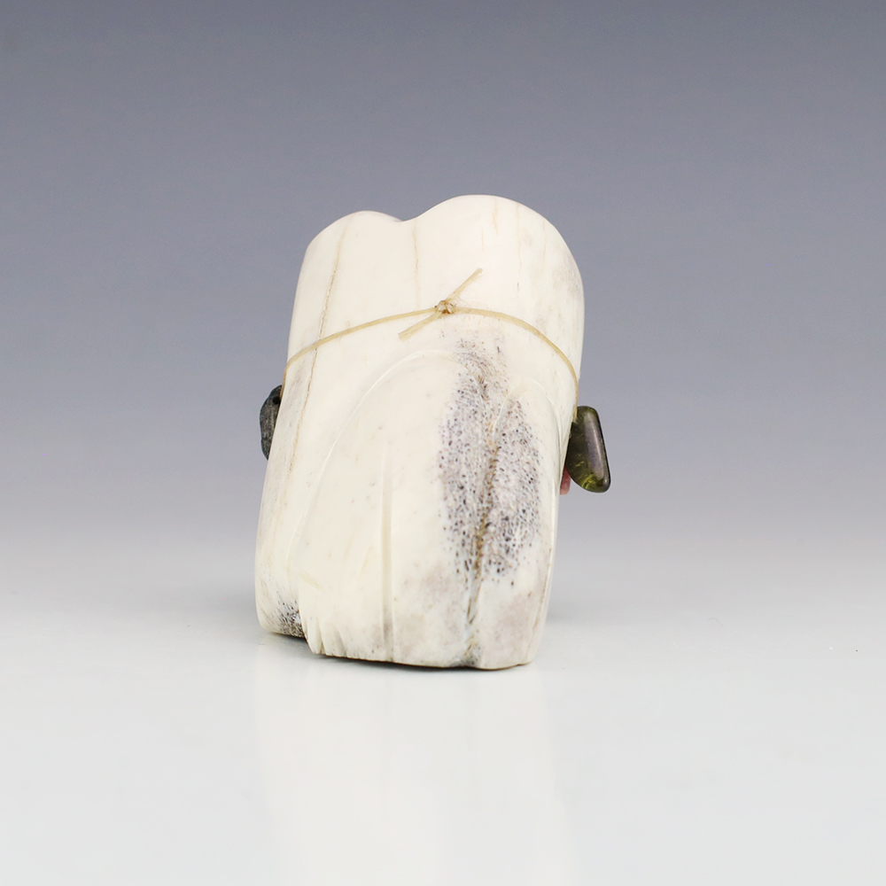 In prehistoric times, frog carvings appeared in jewelry. Zuni frog fetishes are associated with rain, abundance, and fertility. Zuni artist Robert Weahkee made this fabulous Frog fetish. Hand carved out of Antler and his eyes are made out of Turquoise. This great carving would make a great addition to your Native American art or Zuni fetish collection. Signed