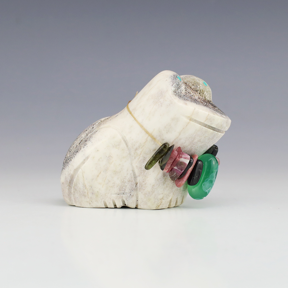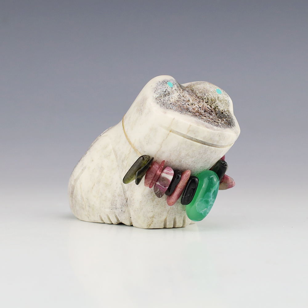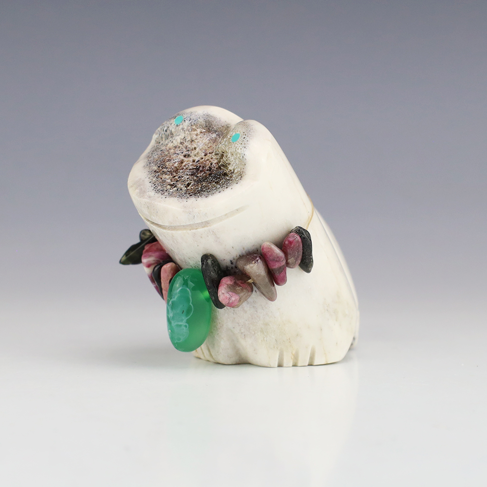 Zuni fetishes are carvings made from various materials by the Zuni people. Traditionally, fetishes served a ceremonial purpose for their creators and they represented animals and figures that were part of their culture. Today, as a form of Native American Art, they are sold to collectors worldwide. With a myriad of materials like turquoise, shell, jet, marble, serpentine, and much more, Zuni fetish carvers are able to create carvings in a style of their own.