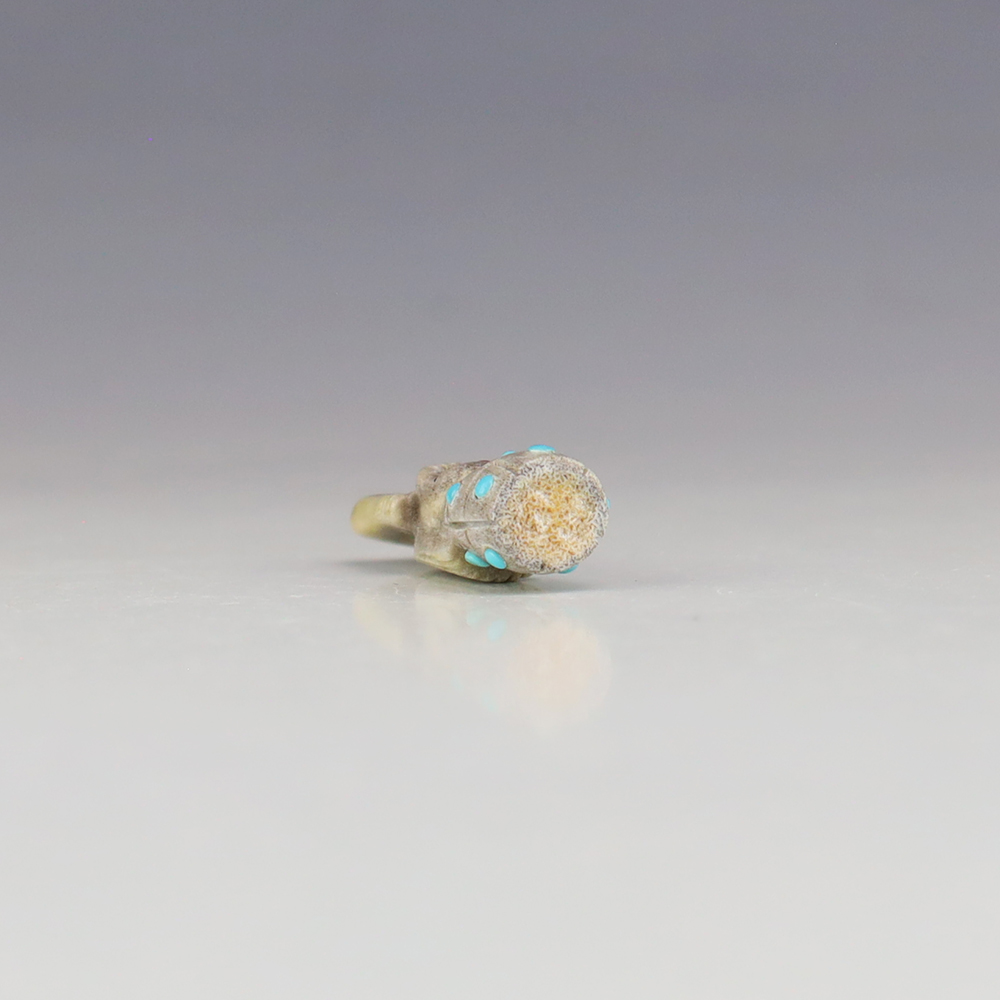 Wonderfully carved, this Corn Maiden fetish is made out of a Water Buffalo Horn and is inlaid with Turquoise and Sterling Silver. The Maiden’s hair and corn body is delicately etched, as well as, corn stalks and dragonflies on her dress. Hand made by Zuni artist Todd Westika. The Corn...