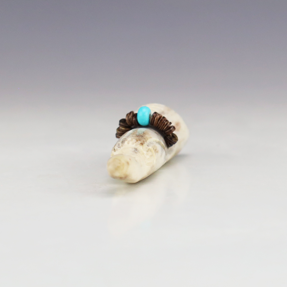 Zuni artist Gabe Sice hand carved this lovely maiden fetish. Made out of antler with intricate detail and inlaid with natural Sleeping Beauty Turquoise, Mediterranean Coral, and Penn Shell. This maiden would make a great addition to your Native American or Zuni fetish collection. Signed 2 3/8” tall x 3/4”...