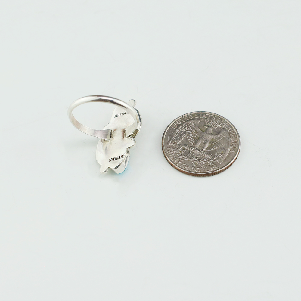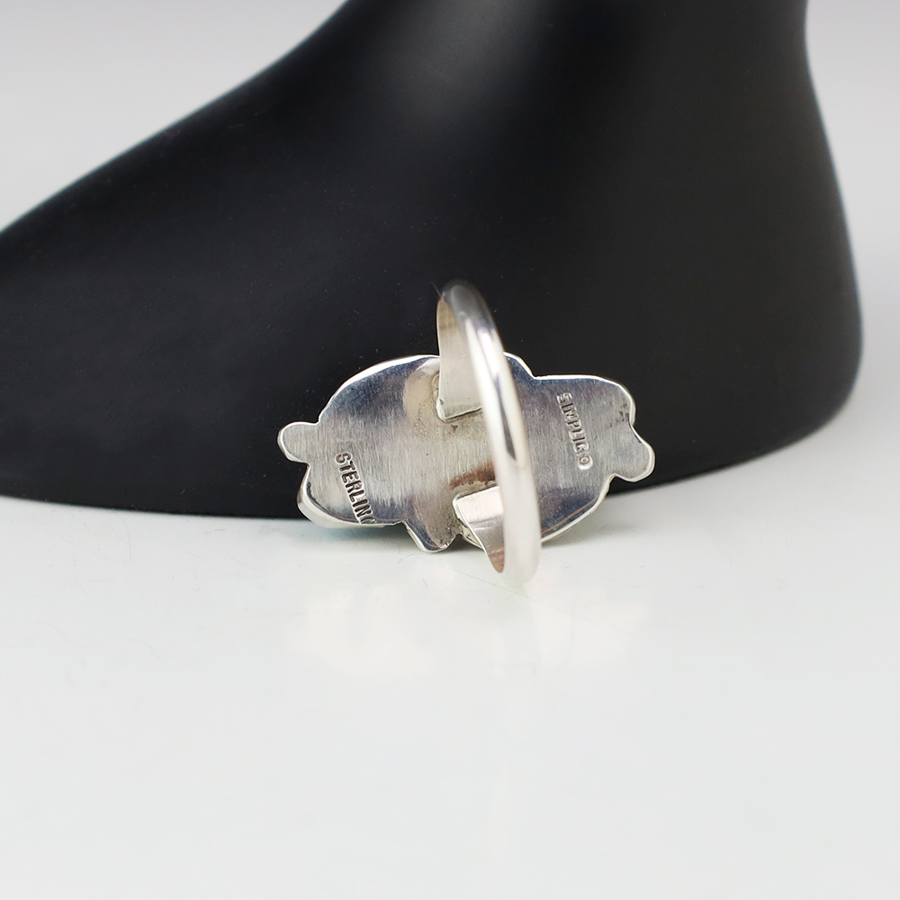 Amazing inlay work! Zuni jewelry makers, Nancy and Sheldon Westika made this stunning ring. Made out of sterling silver and inlaid with Kingman Turquoise and Jet. Zuni artists are known for their lapidary work. The Westikas have been making jewelry since the 1970’s and they are known for their fine...