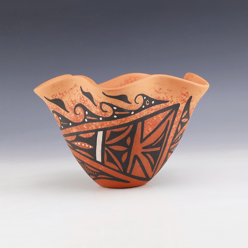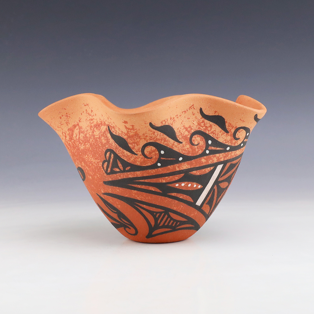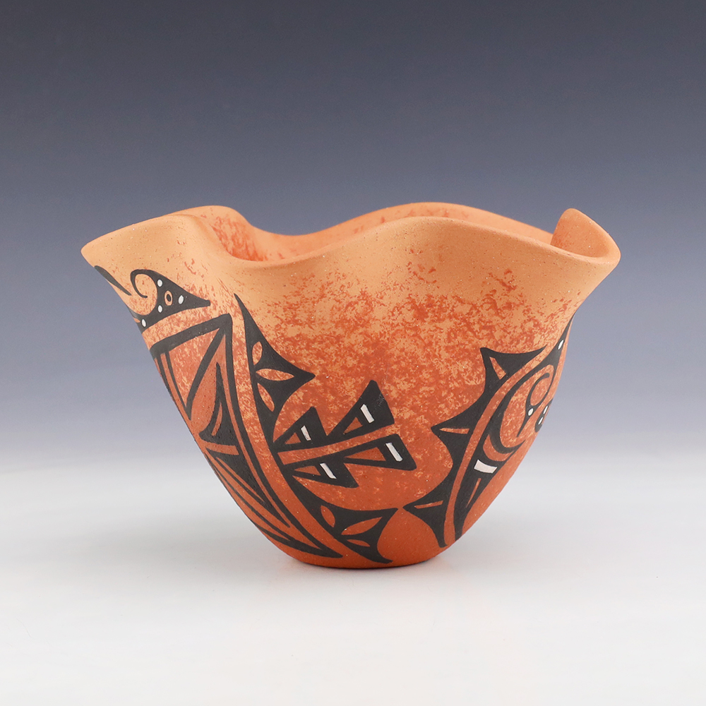 A charming addition to any art or pottery collection. Birdell “Vine Flower” Bourdon from the Santa Clara Pueblo, made this pottery bear with natural clay. Birdell continues a long tradition of hand coiling pottery. She was taught the traditional methods by her mother, Marie Sisneros Askan, and she has been...