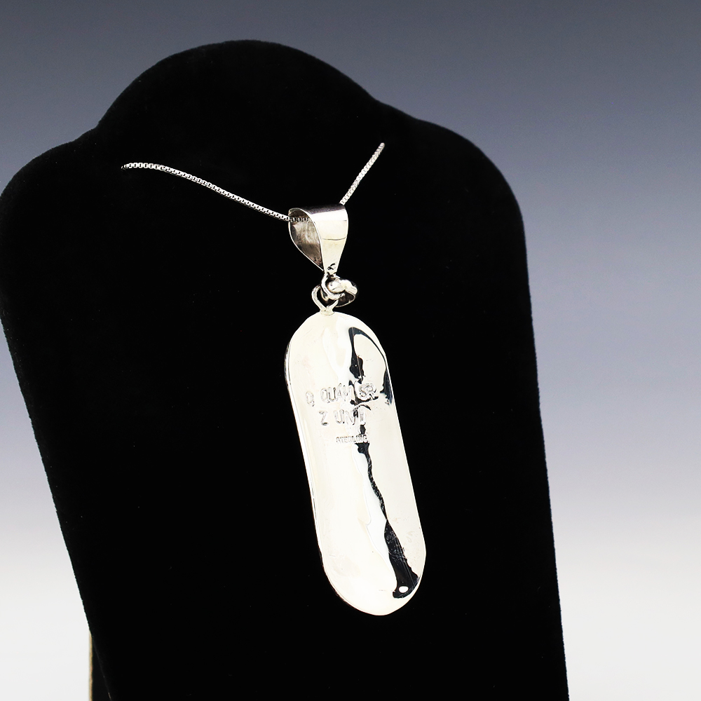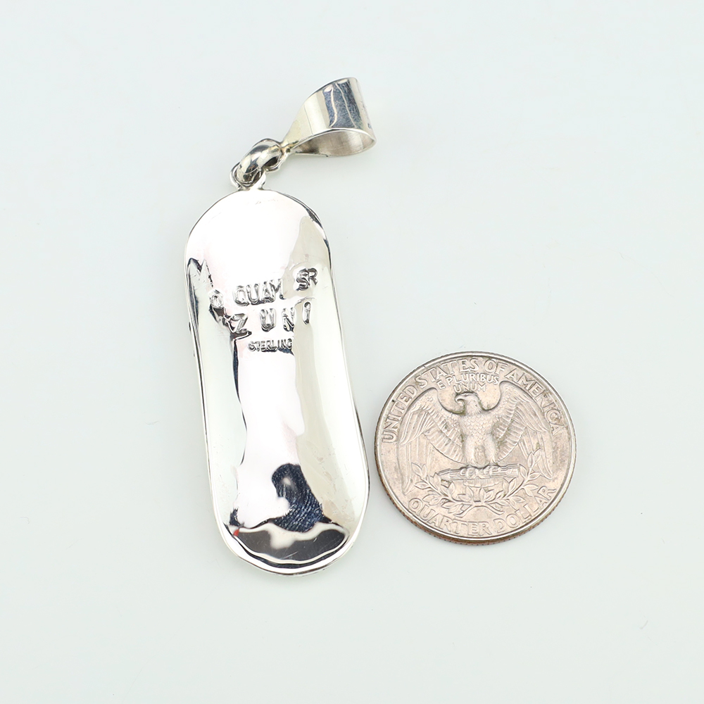 Zuni artists are known for their fine lapidary skills. Each stone is hand cut, polished, and set into a sterling silver setting. Zuni jeweler Diane Lonjose made this beautiful butterfly pendant. Sterling silver with Kingman Turquoise. This can be worn as a pendant or pin. Weighs 12 grams. (Chain not...
