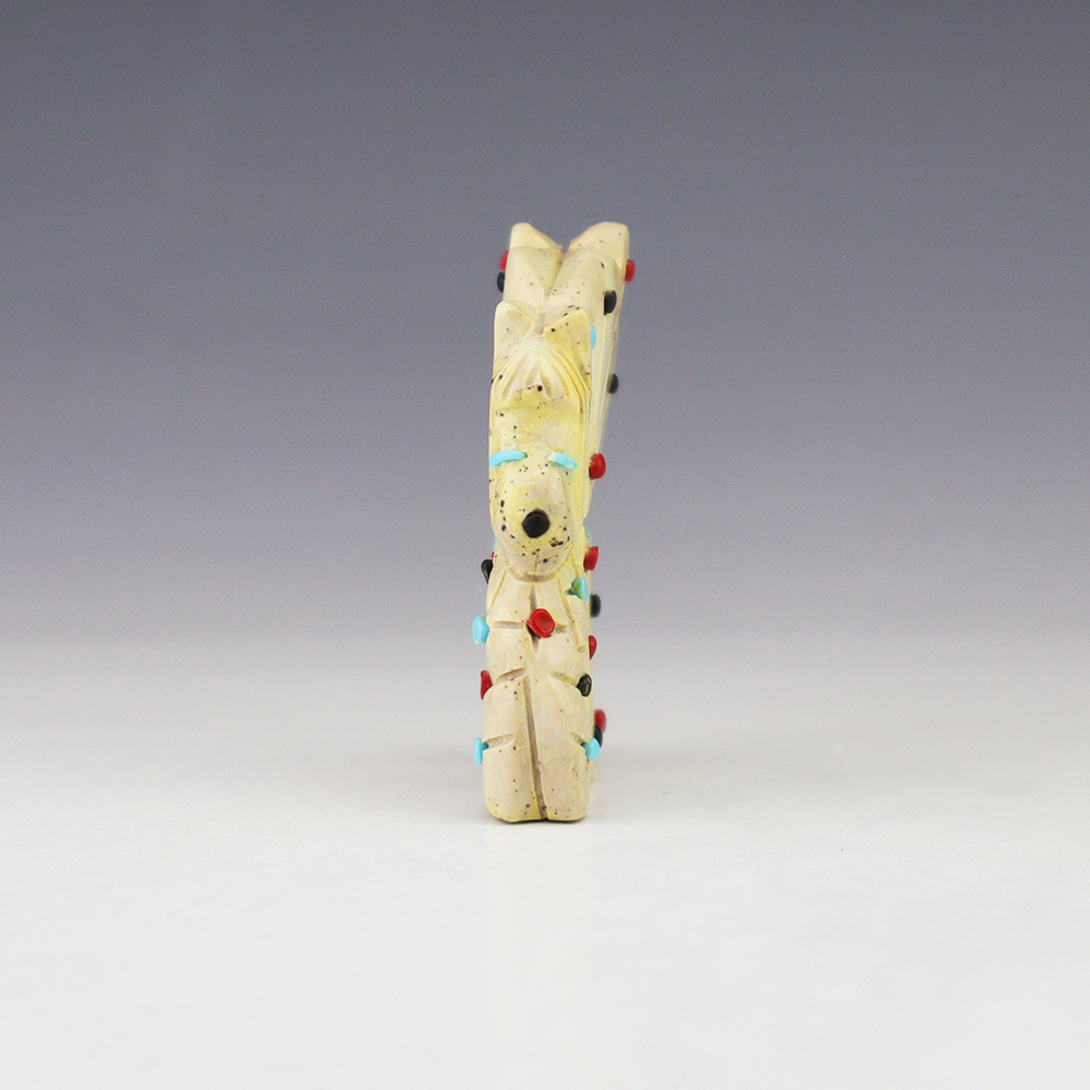 Zuni fetishes are carvings made from various materials by the Zuni people. Traditionally, fetishes served a ceremonial purpose for their creators and they represented animals and figures that were part of their culture. Today, as a form of Native American Art, they are sold to collectors worldwide. With a myriad of materials like turquoise, shell, jet, marble, serpentine, and much more, Zuni fetish carvers are able to create carvings in a style of their own.