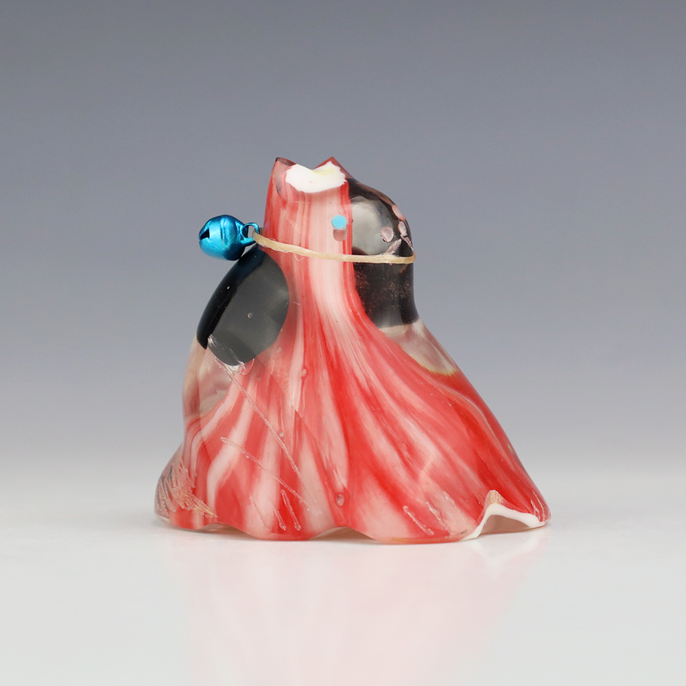 Zuni fetish carvers Leland Boone and Daphne Quam made this stellar cat fetish out of Glass. A great addition to your Native American or Zuni fetish collection. (note-there is natural fracturing in the stone)