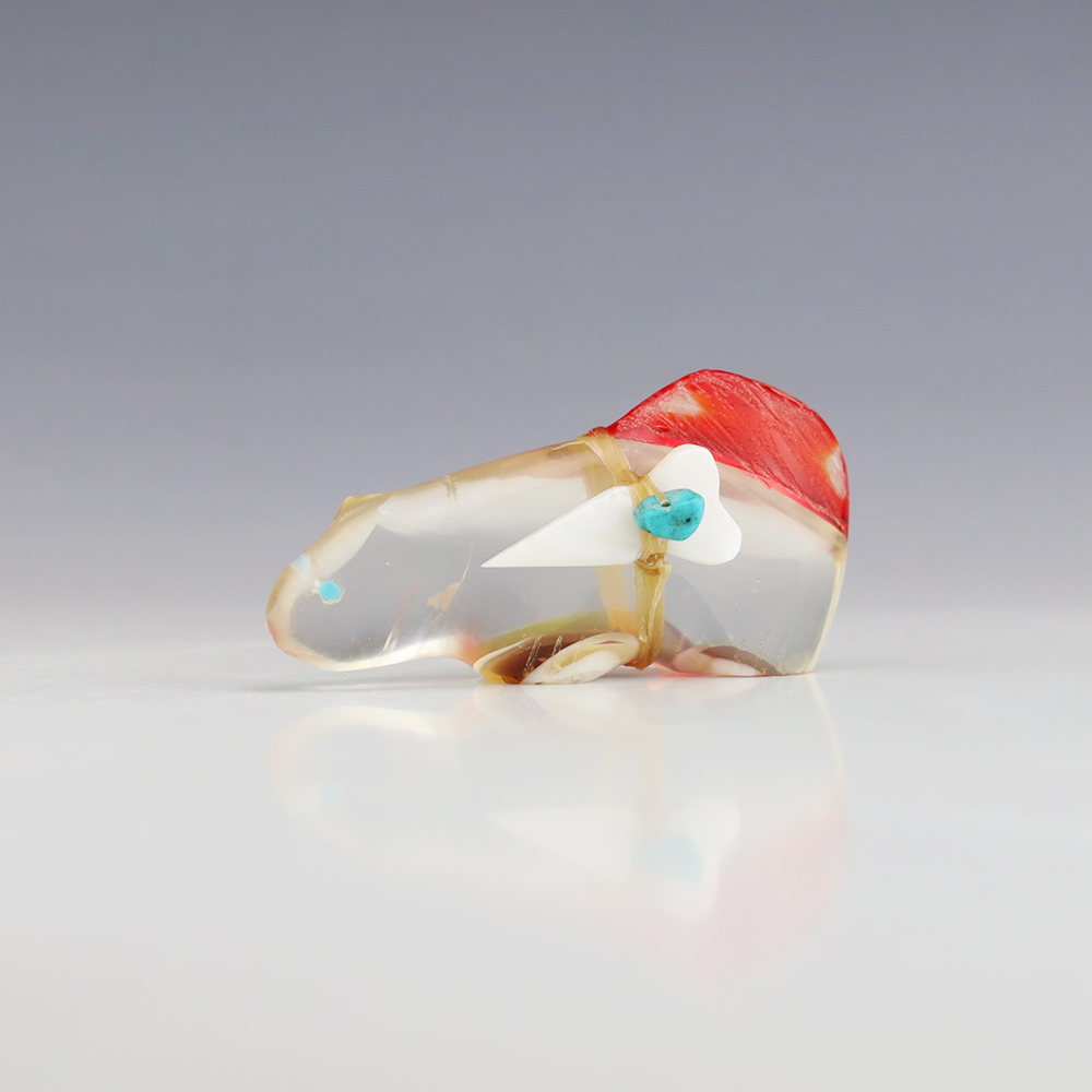 Zuni fetishes are carvings made from various materials by the Zuni people. Traditionally, fetishes served a ceremonial purpose for their creators and they represented animals and figures that were part of their culture. Today, as a form of Native American Art, they are sold to collectors worldwide. With a myriad of materials like turquoise, shell, jet, marble, serpentine, and much more, Zuni fetish carvers are able to create carvings in a style of their own.