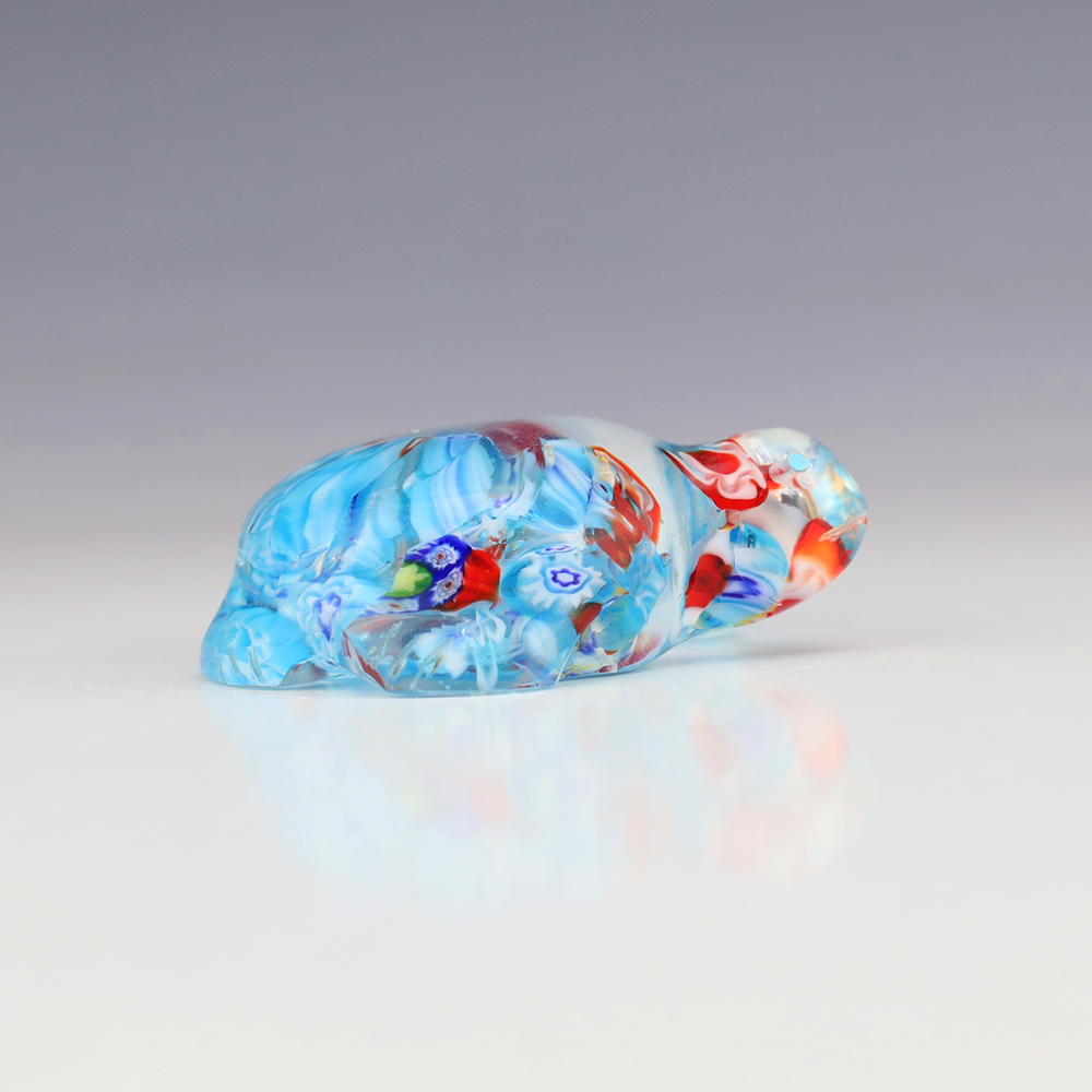 Zuni fetish artists Leland Boone and Daphne Quam made this wonderful Turtle. Hand carved out of Glass. Zuni turtle fetishes are one of the oldest symbols of Mother Earth and they symbolize longevity. A great addition to your Native American or Zuni fetish collection. (note-there is natural fracturing in the stone)