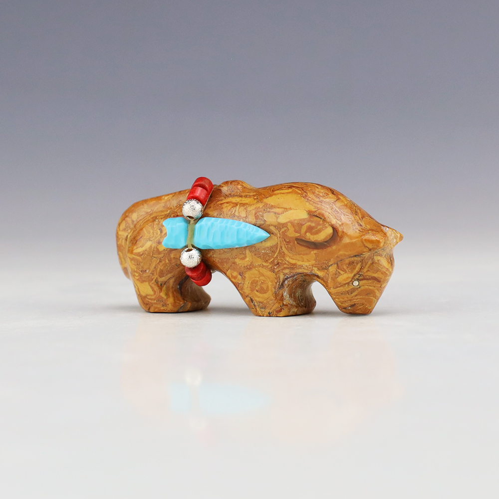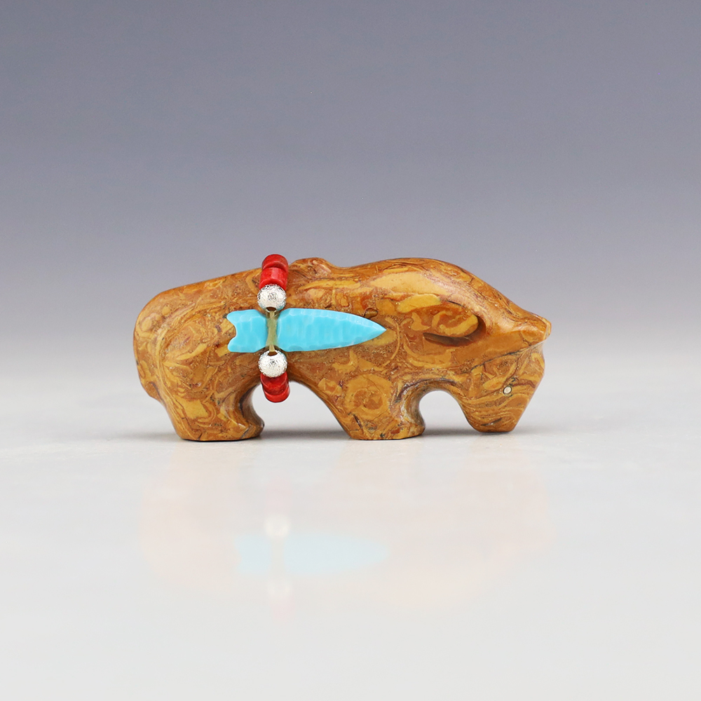 Zuni fetishes are carvings made from various materials by the Zuni people. Traditionally, fetishes served a ceremonial purpose for their creators and they represented animals and figures that were part of their culture. Today, as a form of Native American Art, they are sold to collectors worldwide. With a myriad of materials like turquoise, shell, jet, marble, serpentine, and much more, Zuni fetish carvers are able to create carvings in a style of their own.