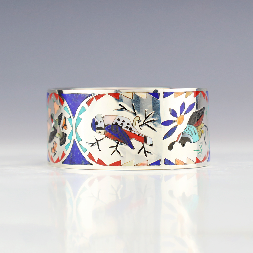 Zuni Pueblo is the largest pueblo in New Mexico, and because of its location, Zuni is the most traditional. Continuing to make jewelry, fetishes, and pottery, most of the people of Zuni are artists. Zuni jewelry makers are known for lapidary skills including inlay, needlepoint, and petite point work.