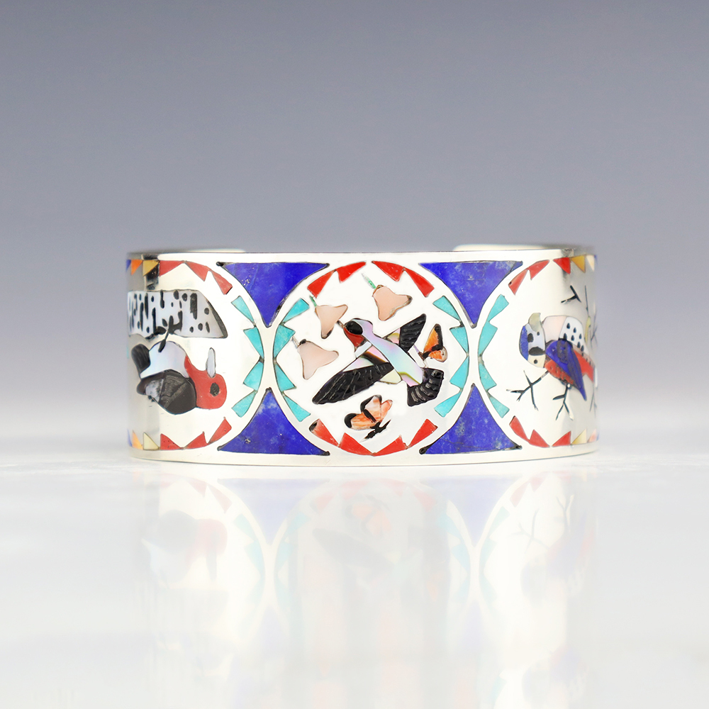 Zuni Pueblo is the largest pueblo in New Mexico, and because of its location, Zuni is the most traditional. Continuing to make jewelry, fetishes, and pottery, most of the people of Zuni are artists. Zuni jewelry makers are known for lapidary skills including inlay, needlepoint, and petite point work.