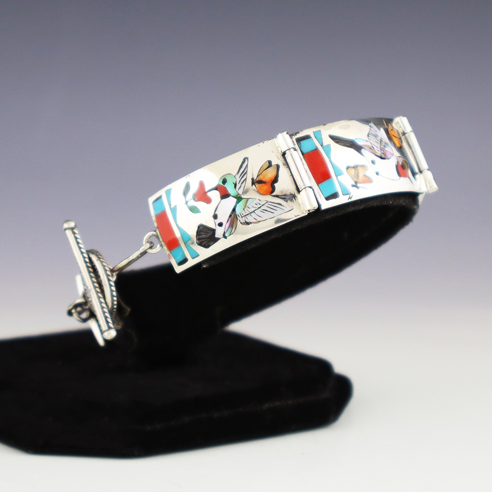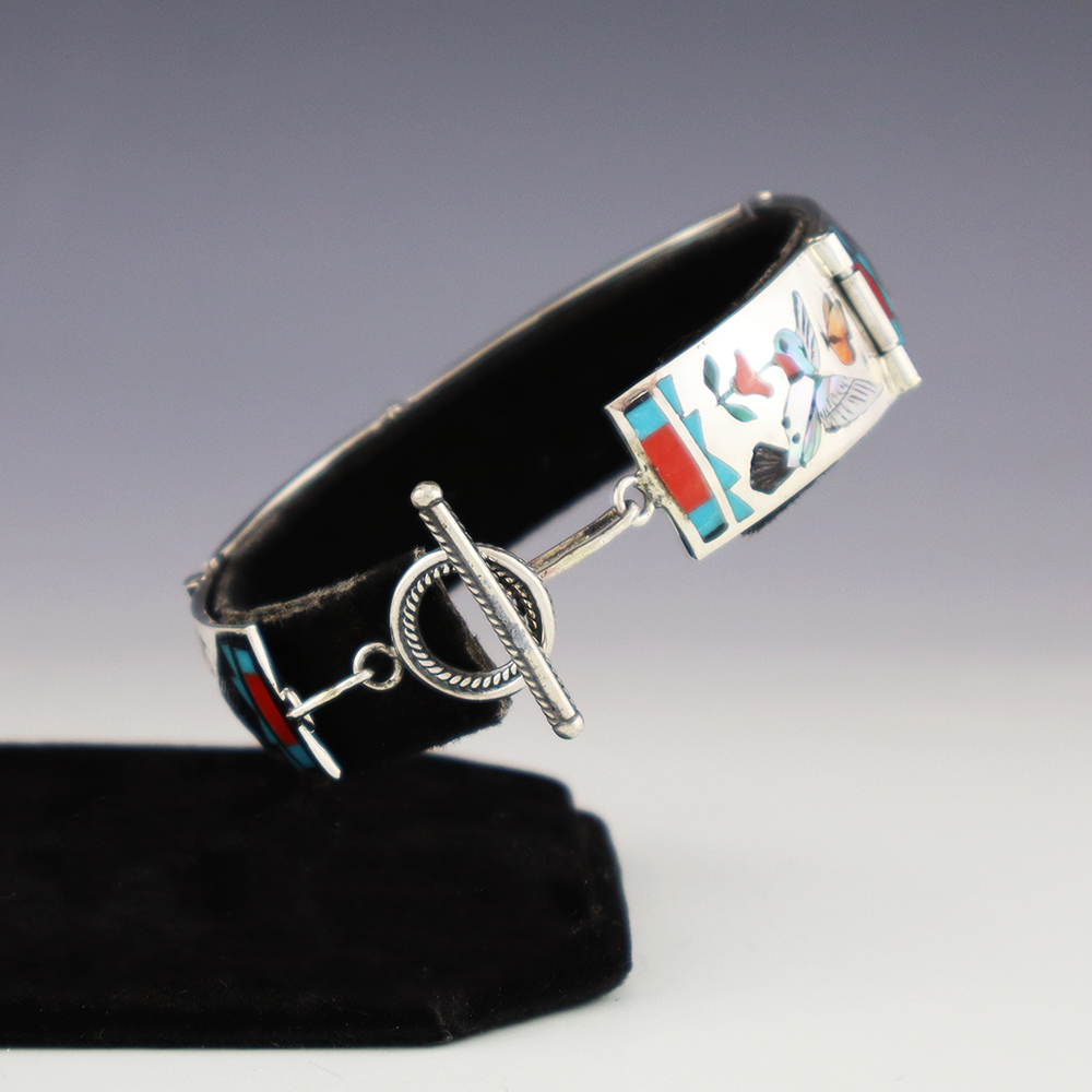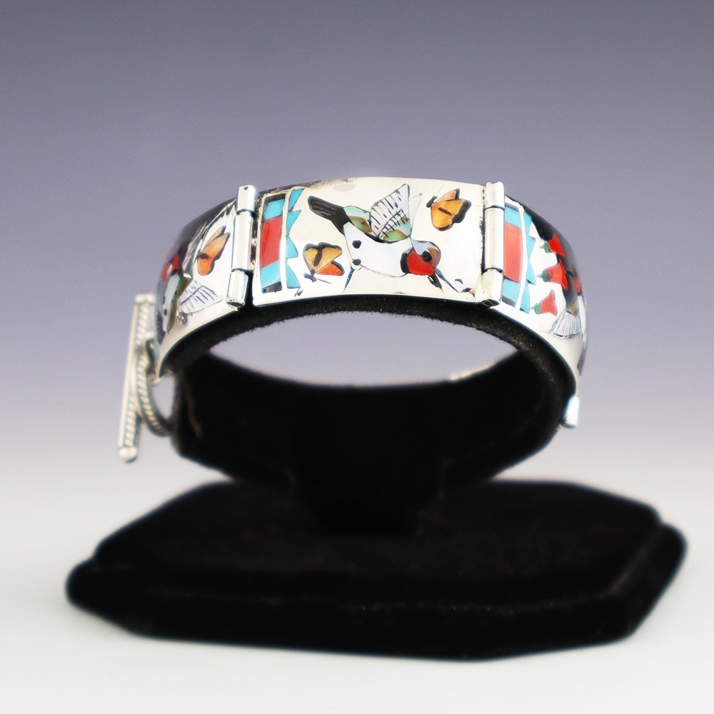 Zuni Pueblo is the largest pueblo in New Mexico, and because of its location, Zuni is the most traditional. Continuing to make jewelry, fetishes, and pottery, most of the people of Zuni are artists. Zuni jewelry makers are known for lapidary skills including inlay, needlepoint, and petite point work.