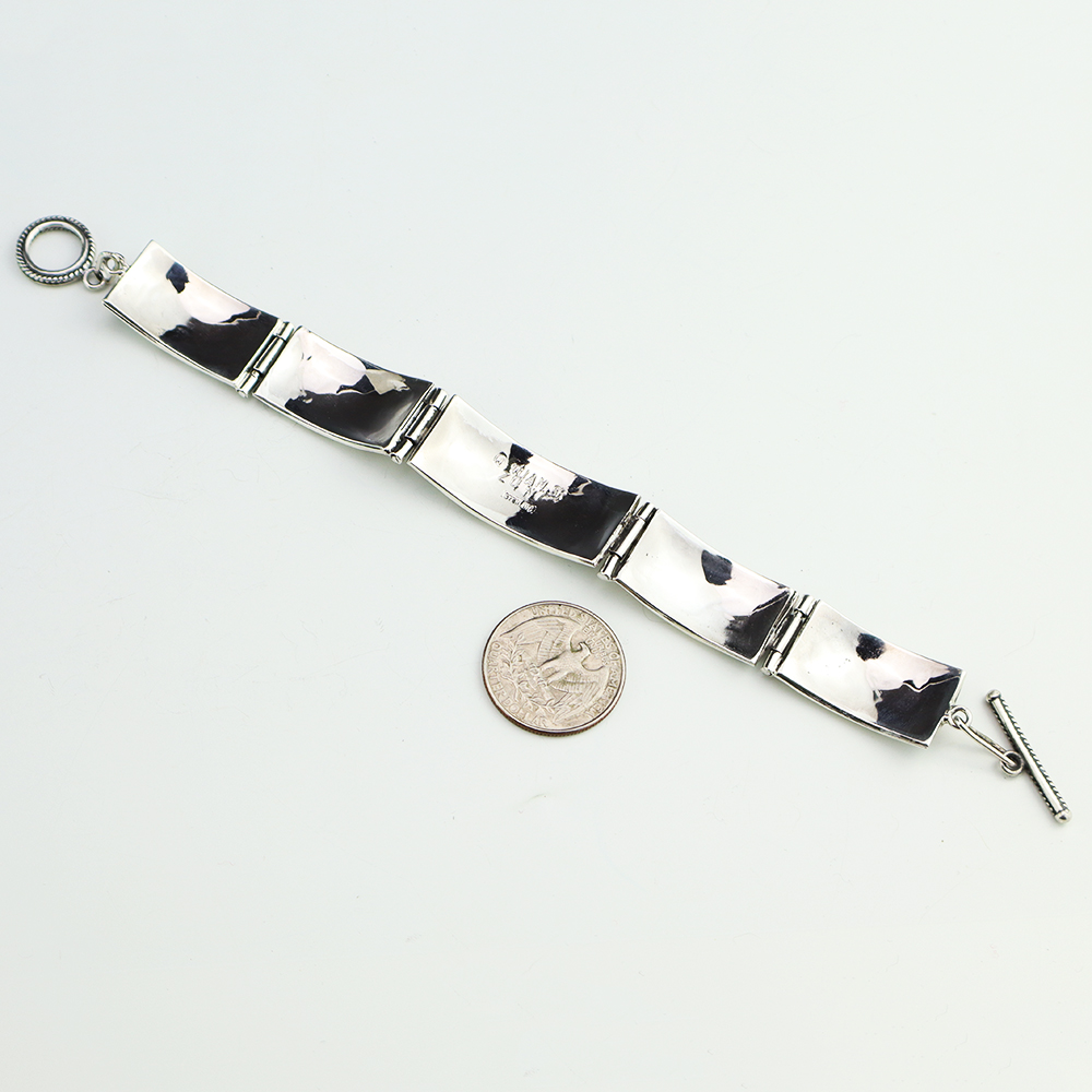 This bracelet will be a delight to wear, as well as a good representation of the fine craftsmanship of Edmund Cooeyate. Edmund is known for his fine needlpeoint work. This gorgeous bracelet is made out of sterling silver and Turquoise. Weighs 14 grams. Signed. The entire inner circumference is about...