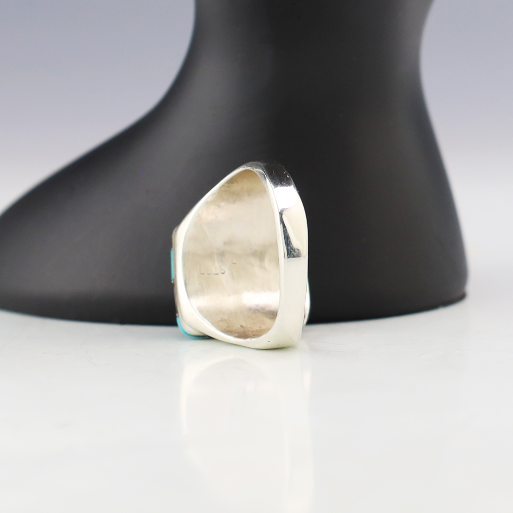 NATIVE AMERICAN TURQUOISE & JET RING BY NANCY & SHELDON WESTIKA 11 1/4