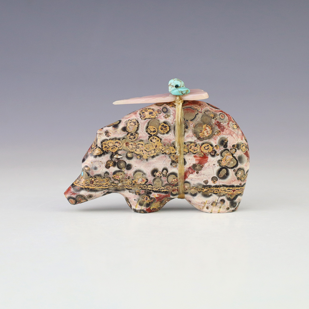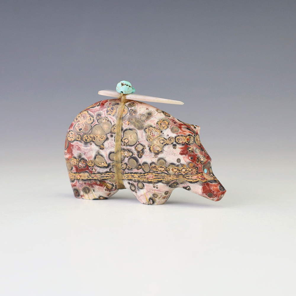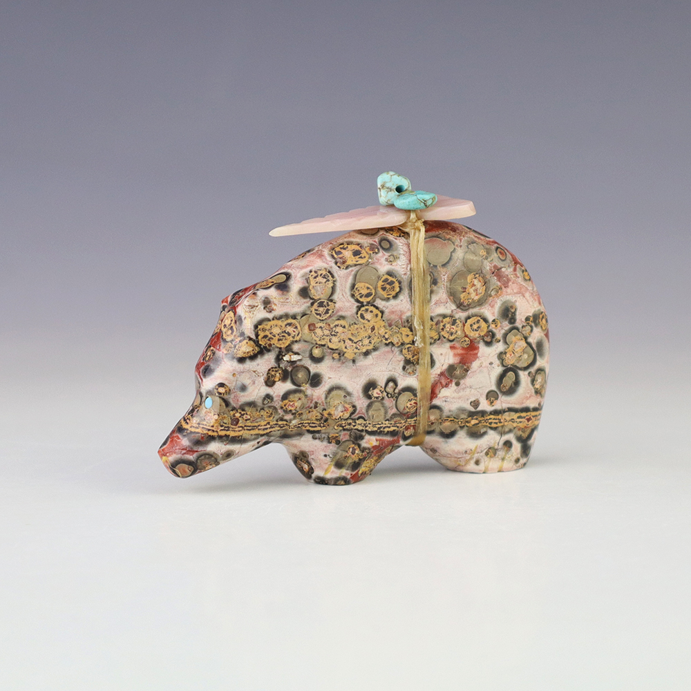 Zuni fetishes are carvings made from various materials by the Zuni people. Traditionally, fetishes served a ceremonial purpose for their creators and they represented animals and figures that were part of their culture. Today, as a form of Native American Art, they are sold to collectors worldwide. With a myriad of materials like turquoise, shell, jet, marble, serpentine, and much more, Zuni fetish carvers are able to create carvings in a style of their own.