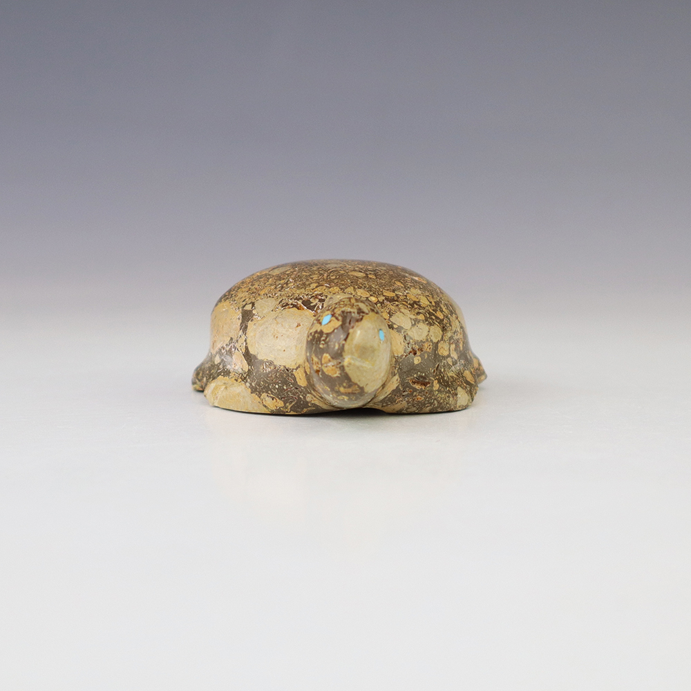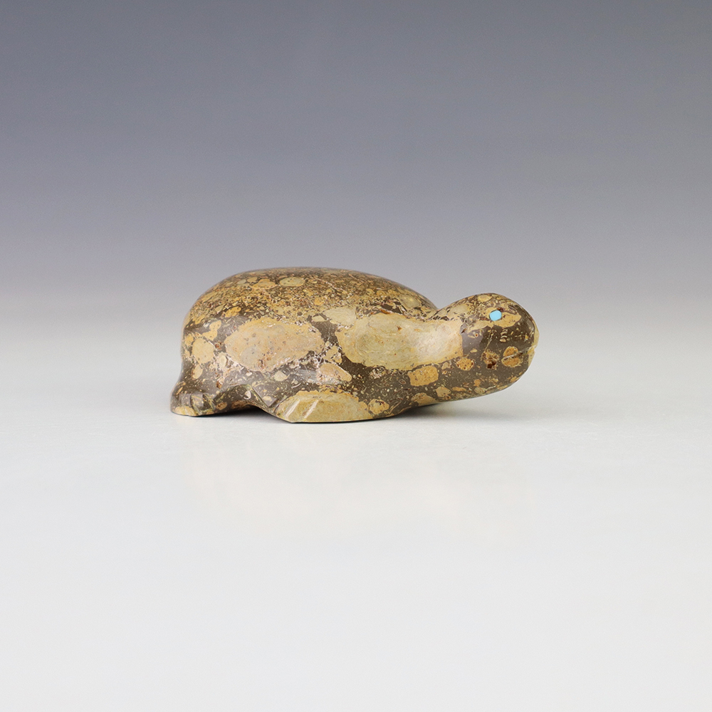 Zuni fetish carver, Nelson Yatsattie hand crafted this marvelous turtle. Hand carved out of Onyx with Turquoise inlaid eyes. Zuni turtle fetishes are one of the oldest symbols of Mother Earth and they symbolize longevity. Signed 3/4” tall x 2 1/2” long x 2” wide Zuni fetishes are carvings made...