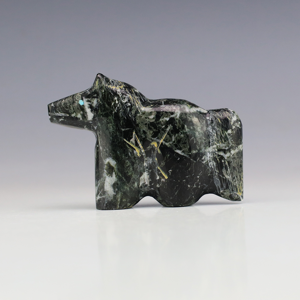 Zuni fetishes are carvings made from various materials by the Zuni people. Traditionally, fetishes served a ceremonial purpose for their creators and they represented animals and figures that were part of their culture. Today, as a form of Native American Art, they are sold to collectors worldwide. With a myriad of materials like turquoise, shell, jet, marble, serpentine, and much more, Zuni fetish carvers are able to create carvings in a style of their own.