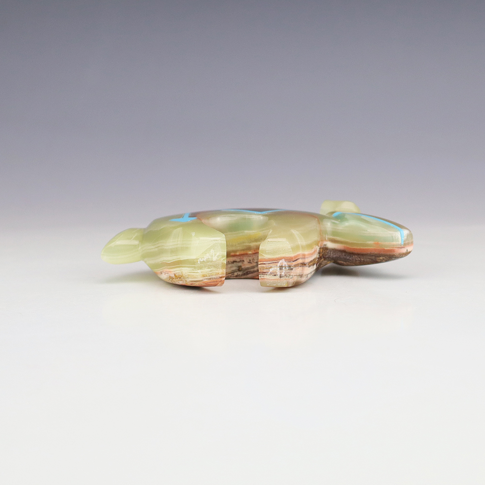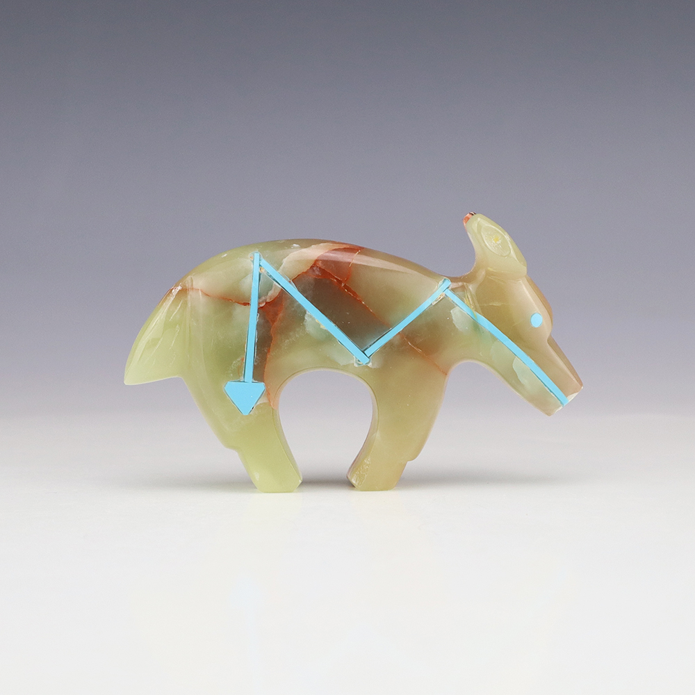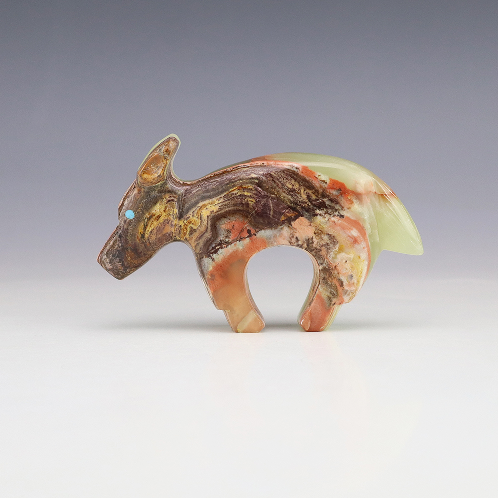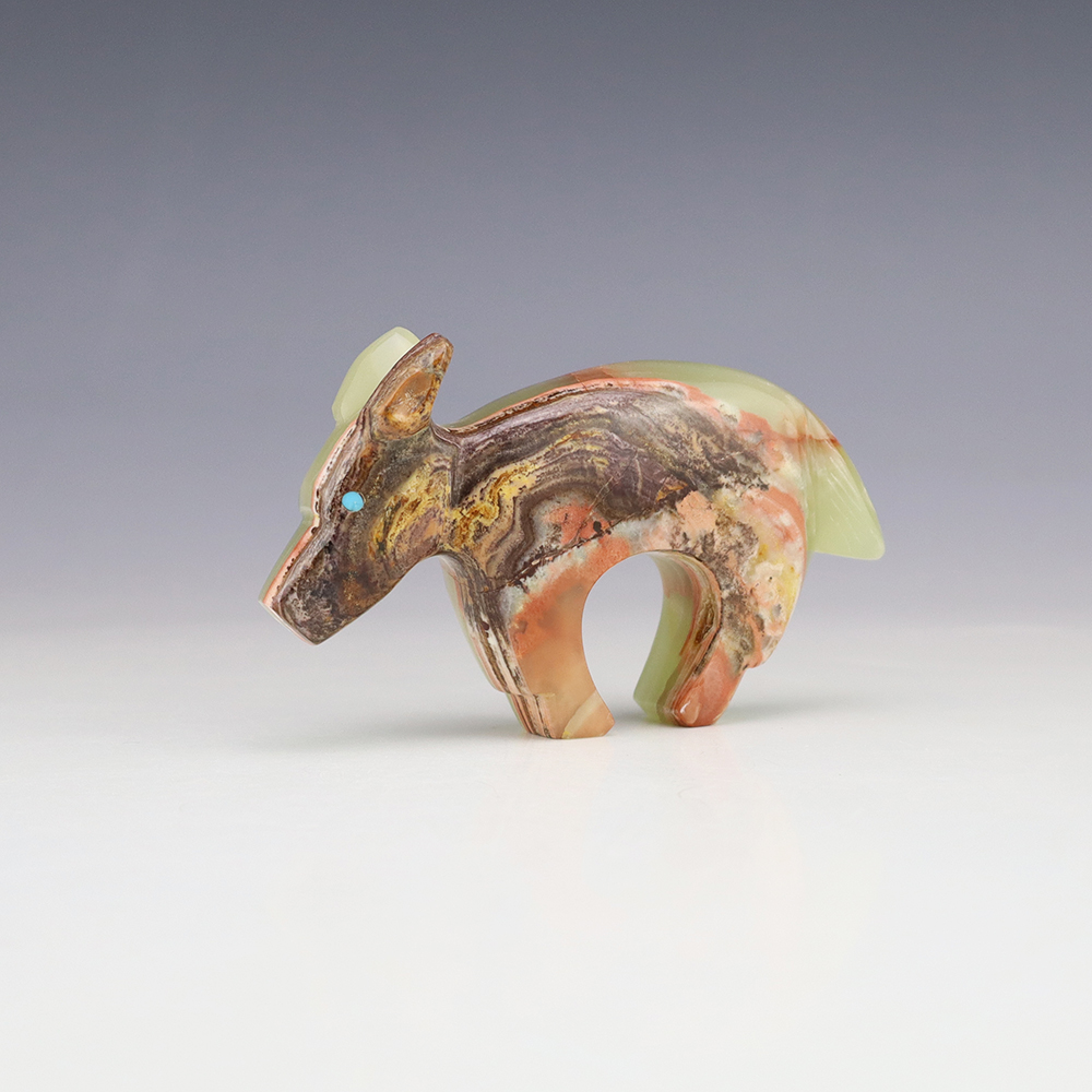 Zuni fetishes are carvings made from various materials by the Zuni people. Traditionally, fetishes served a ceremonial purpose for their creators and they represented animals and figures that were part of their culture. Today, as a form of Native American Art, they are sold to collectors worldwide. With a myriad of materials like turquoise, shell, jet, marble, serpentine, and much more, Zuni fetish carvers are able to create carvings in a style of their own.