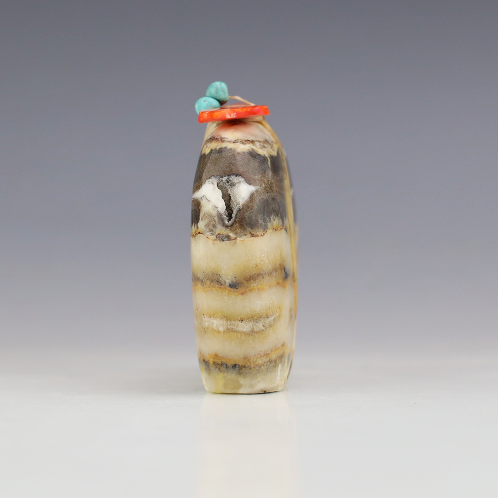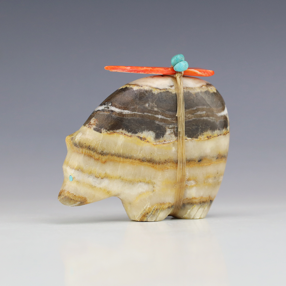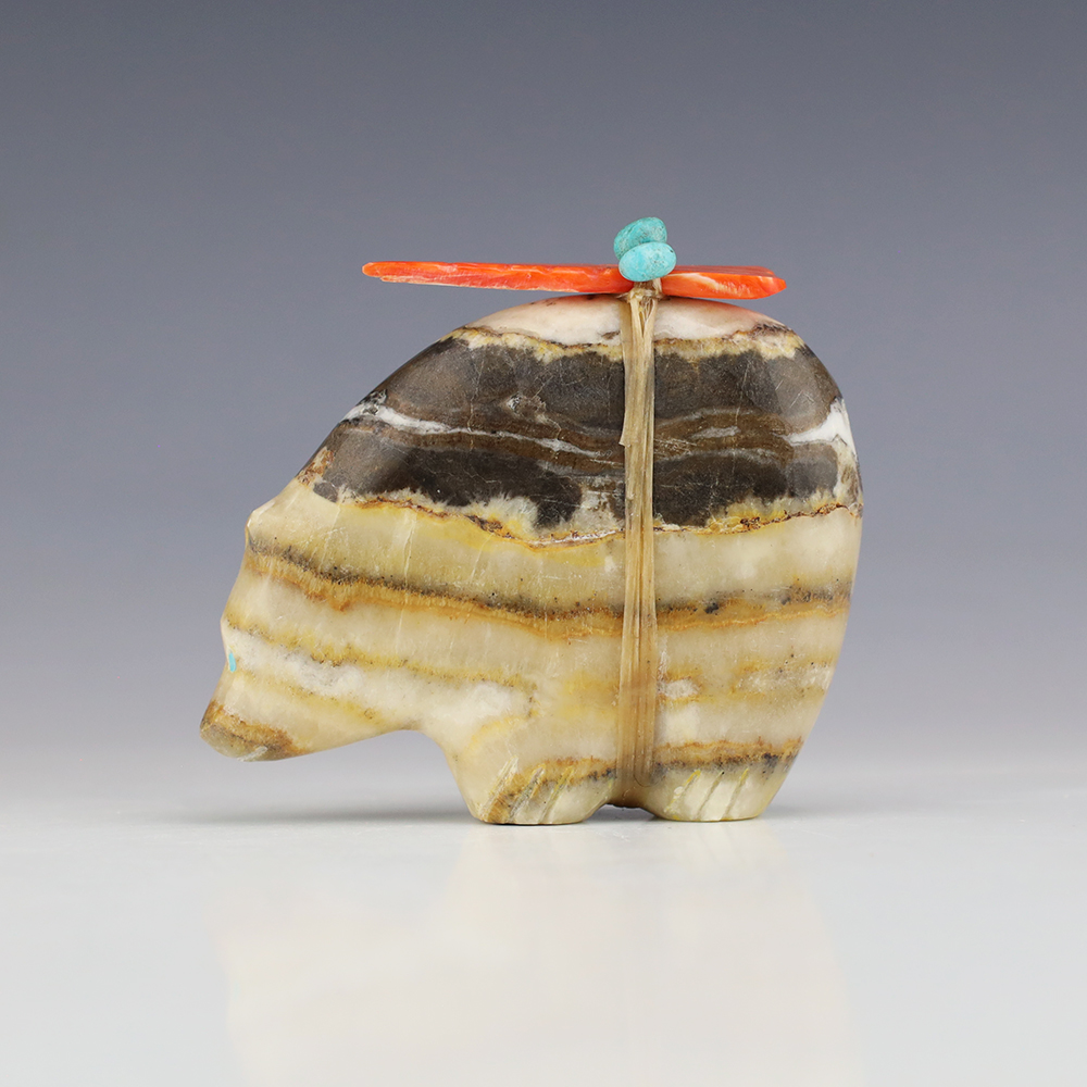 Zuni fetishes are carvings made from various materials by the Zuni people. Traditionally, fetishes served a ceremonial purpose for their creators and they represented animals and figures that were part of their culture. Today, as a form of Native American Art, they are sold to colle/ctors worldwide. With a myriad of materials like turquoise, shell, jet, marble, serpentine, and much more, Zuni fetish carvers are able to create carvings in a style of their own.