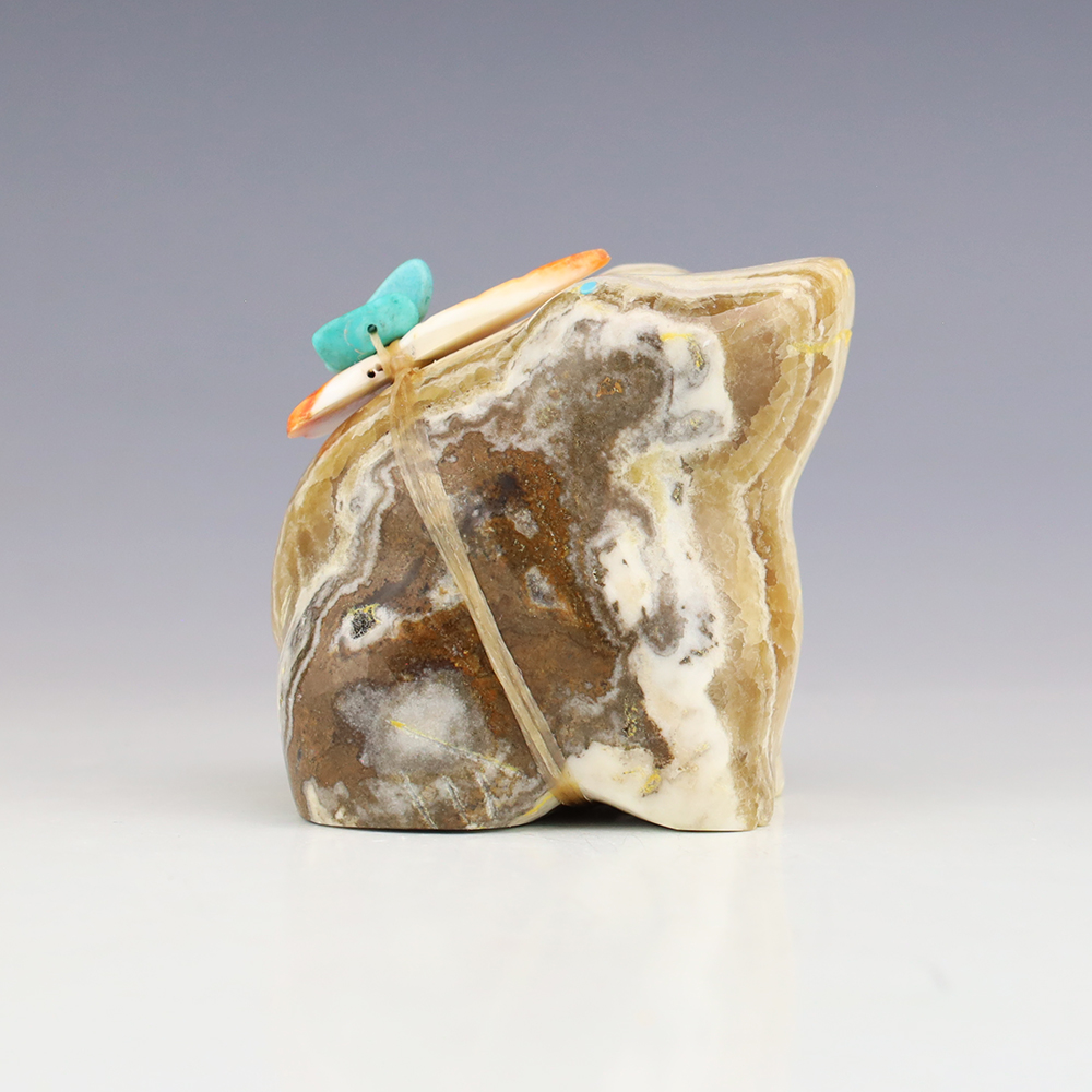 Zuni fetishes are carvings made from various materials by the Zuni people. Traditionally, fetishes served a ceremonial purpose for their creators and they represented animals and figures that were part of their culture. Today, as a form of Native American Art, they are sold to collectors worldwide. With a myriad of materials like turquoise, shell, jet, marble, serpentine, and much more, Zuni fetish carvers are able to create carvings in a style of their own.