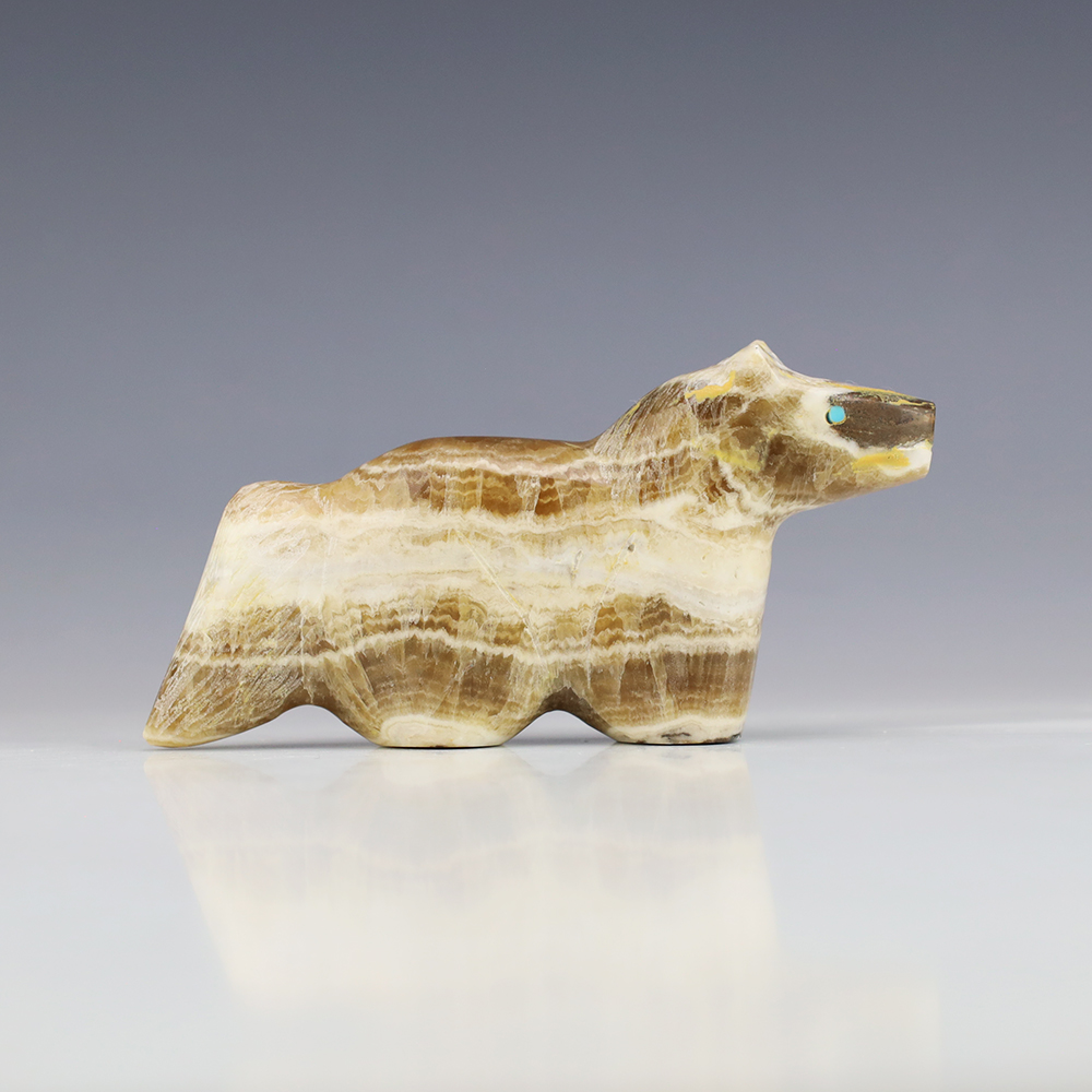 Zuni fetishes are carvings made from various materials by the Zuni people. Traditionally, fetishes served a ceremonial purpose for their creators and they represented animals and figures that were part of their culture. Today, as a form of Native American Art, they are sold to collectors worldwide. With a myriad of materials like turquoise, shell, jet, marble, serpentine, and much more, Zuni fetish carvers are able to create carvings in a style of their own.