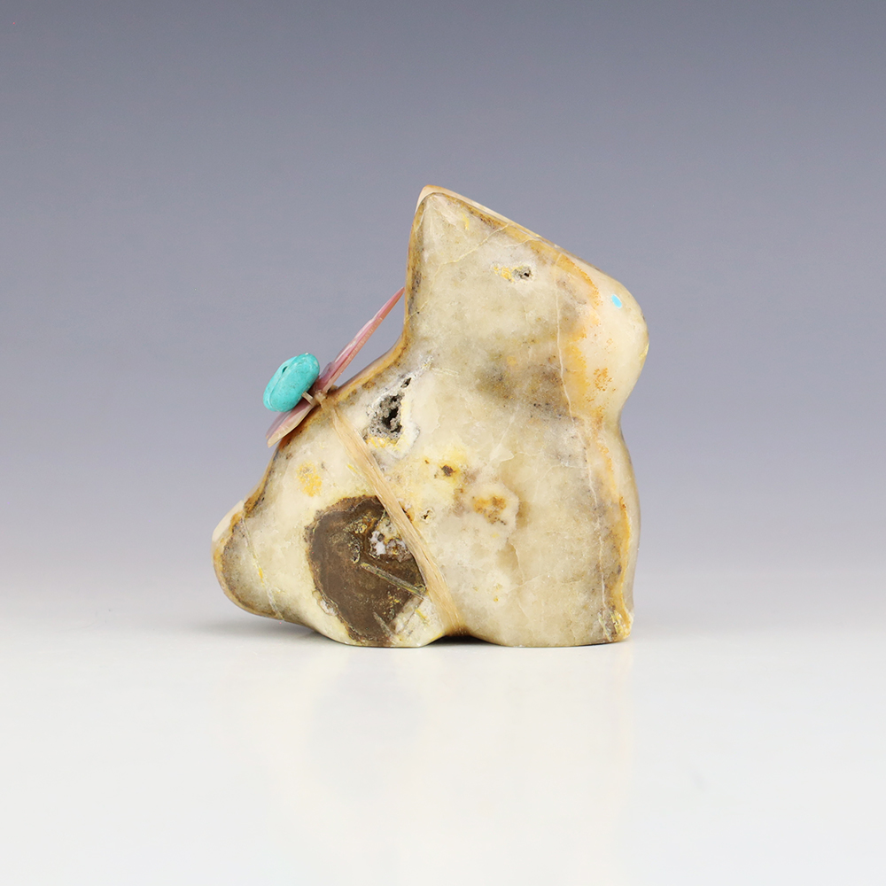 Zuni fetishes are carvings made from various materials by the Zuni people. Traditionally, fetishes served a ceremonial purpose for their creators and they represented animals and figures that were part of their culture. Today, as a form of Native American Art, they are sold to collectors worldwide. With a myriad of materials like turquoise, shell, jet, marble, serpentine, and much more, Zuni fetish carvers are able to create carvings in a style of their own.