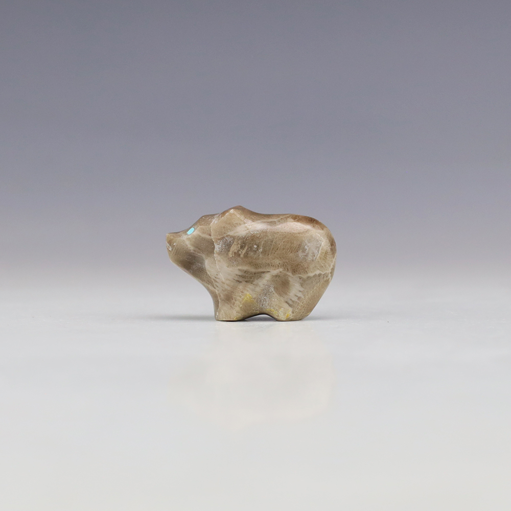 Zuni fetish carvers Leland Boone and Daphne Quam made this marvelous bear fetish out Petoskey Stone. The Bear is the Guardian fetish of the West, and represents healing and strength. A great addition to your Native American or Zuni fetish collection.