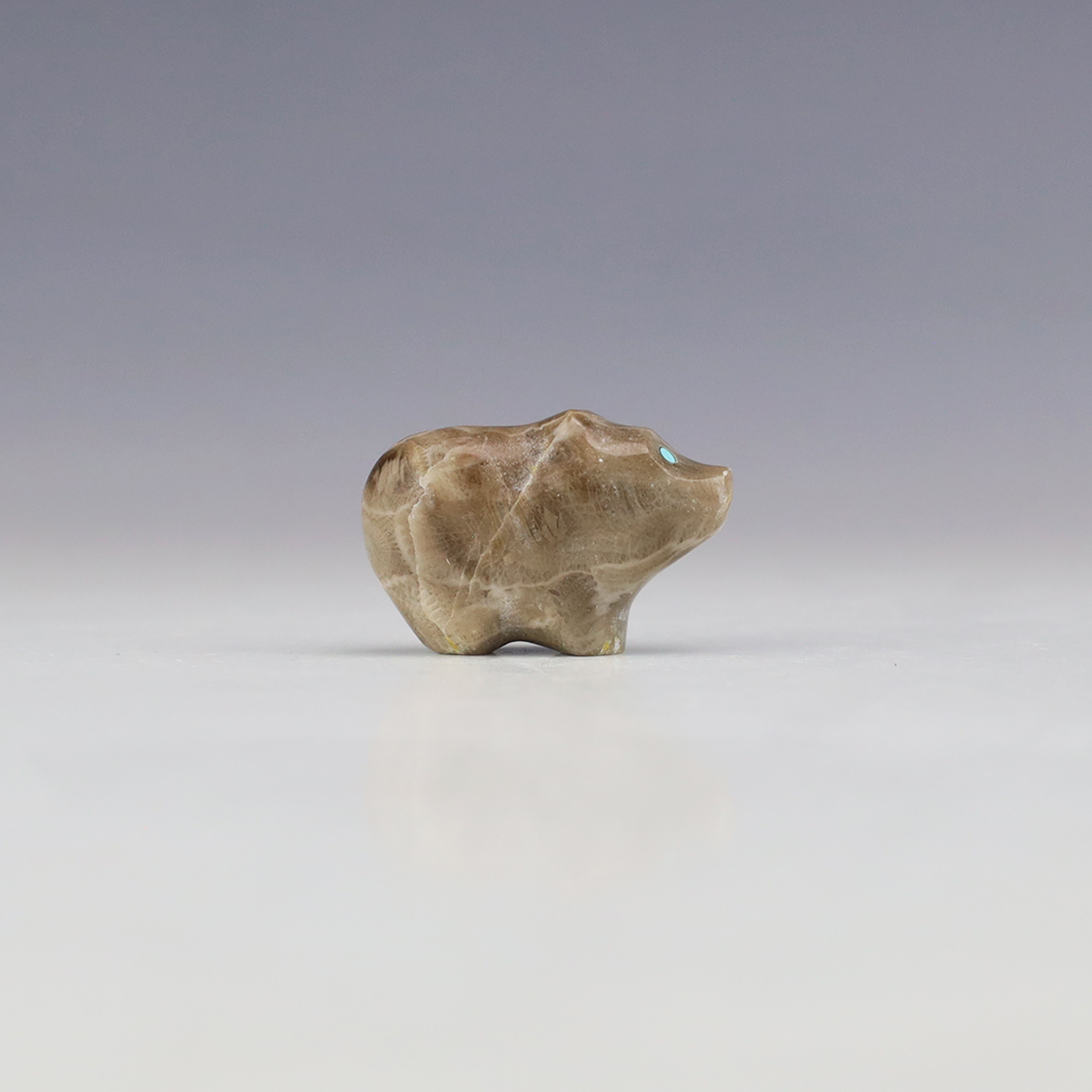 Zuni fetish carvers Leland Boone and Daphne Quam made this marvelous bear fetish out Petoskey Stone. The Bear is the Guardian fetish of the West, and represents healing and strength. A great addition to your Native American or Zuni fetish collection.