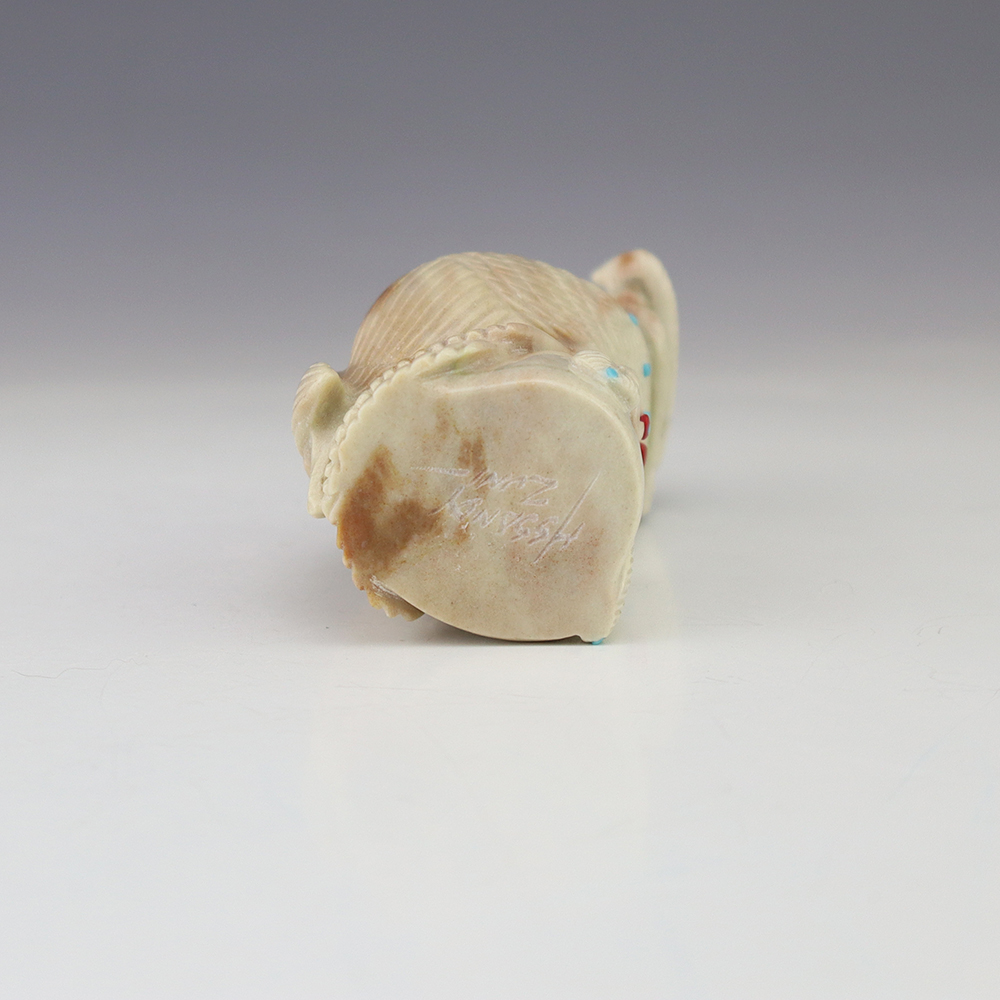 Zuni fetishes are carvings made from various materials by the Zuni people. Traditionally, fetishes served a ceremonial purpose for their creators and they represented animals and figures that were part of their culture. Today, as a form of Native American Art, they are sold to collectors worldwide. With a myriad of materials like turquoise, shell, jet, marble, serpentine, and much more, Zuni fetish carvers are able to create carvings in a style of their own.