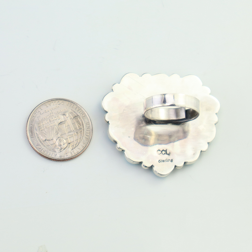 Amazing inlay work! Zuni jewelry makers, Nancy and Sheldon Westika made this stunning ring. Made out of sterling silver and inlaid with Kingman Turquoise and Jet. Zuni artists are known for their lapidary work. The Westikas have been making jewelry since the 1970’s and they are known for their fine...
