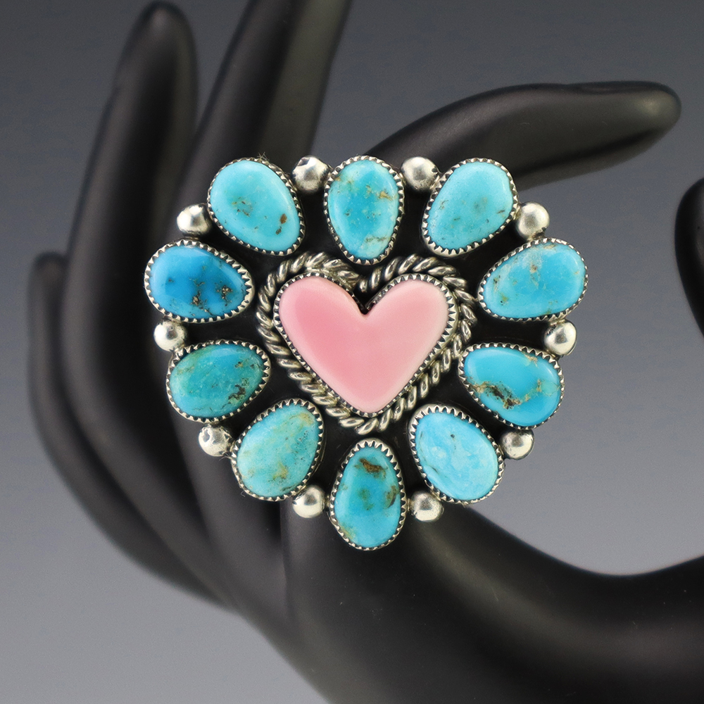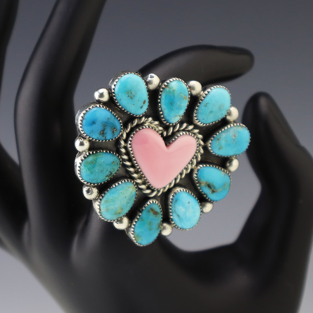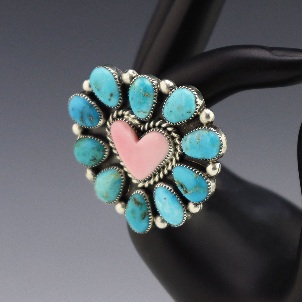 TURQUOISE & JET & RING BY NANCY & SHELDON WESTIKA ZUNI 8