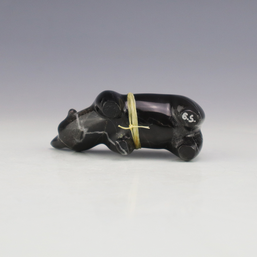 The Bear symbolizes healing and strength. Zuni artist Gabe Sice carved this magnficent bear fetish. The carving is made out of Portoro Marble and is bundled with natural Sleeping Beauty Turquoise and Coral. A great addition to your Native American or Zuni fetish collection. Signed note-there is natural fracturing in the stone