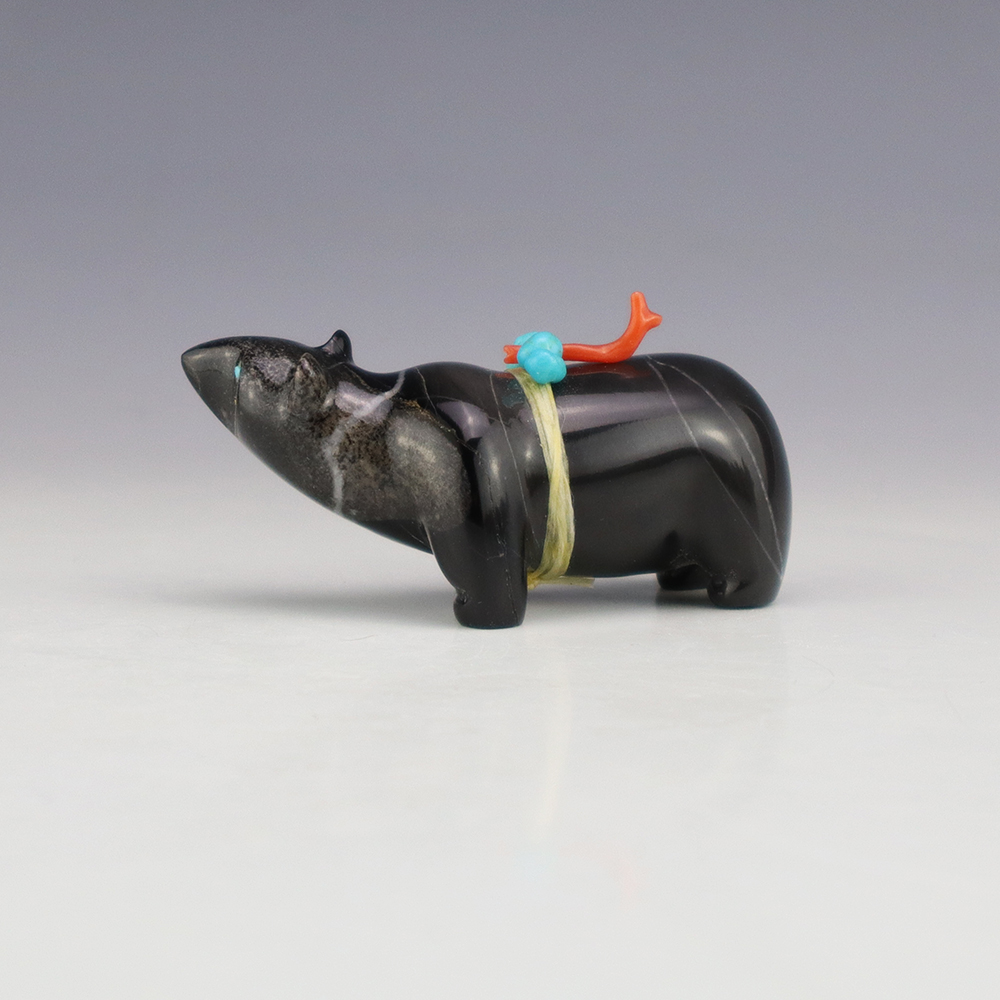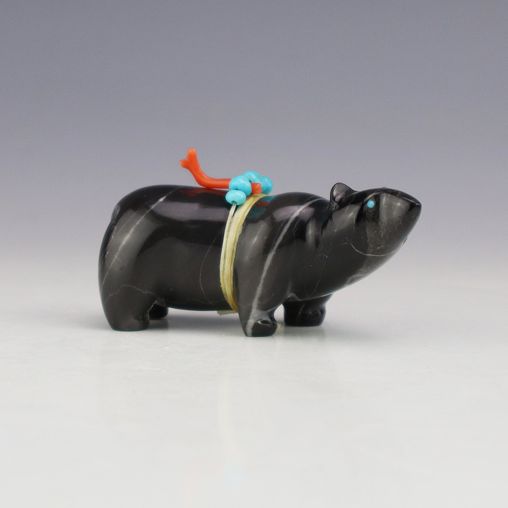 Zuni fetishes are carvings made from various materials by the Zuni people. Traditionally, fetishes served a ceremonial purpose for their creators and they represented animals and figures that were part of their culture. Today, as a form of Native American Art, they are sold to collectors worldwide. With a myriad of materials like turquoise, shell, jet, marble, serpentine, and much more, Zuni fetish carvers are able to create carvings in a style of their own.