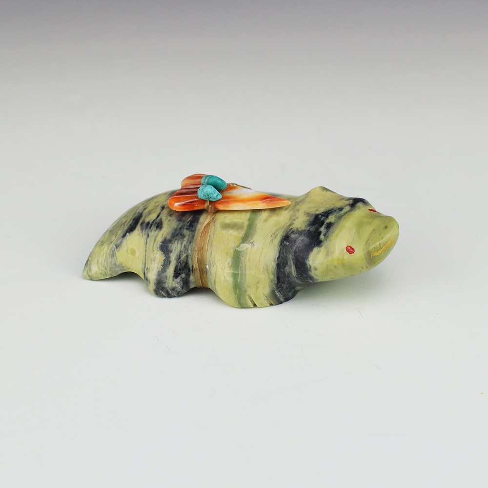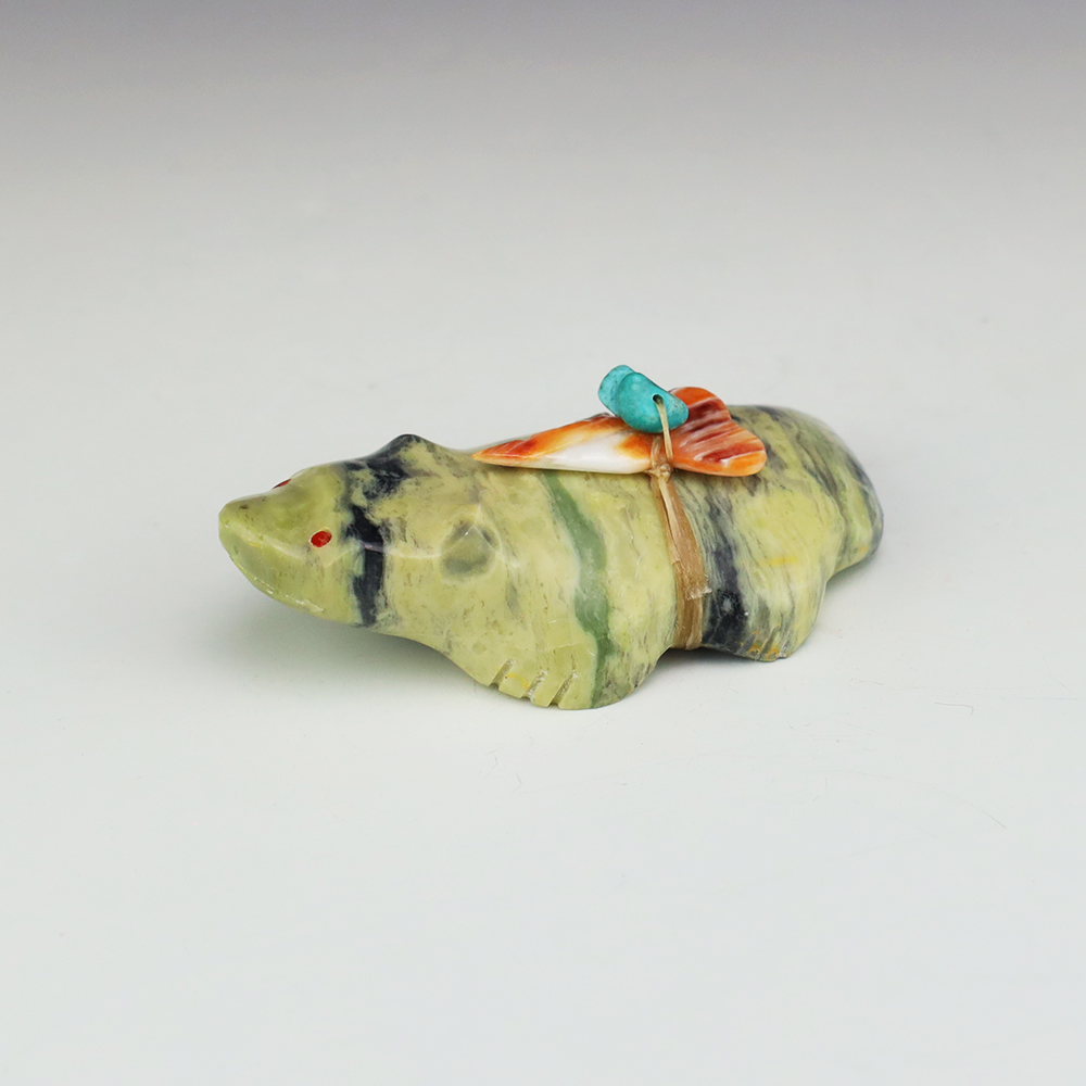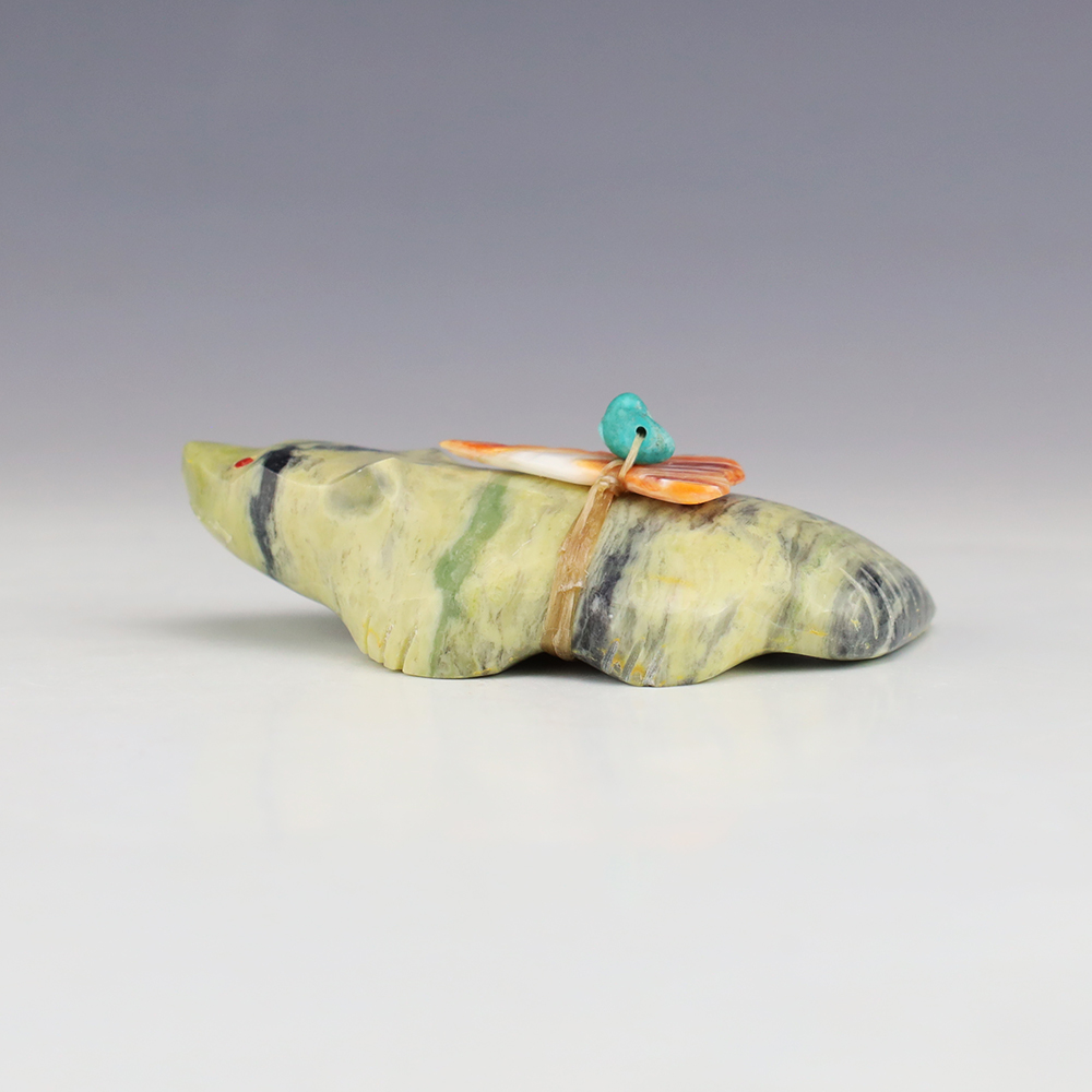 Zuni fetishes are carvings made from various materials by the Zuni people. Traditionally, fetishes served a ceremonial purpose for their creators and they represented animals and figures that were part of their culture. Today, as a form of Native American Art, they are sold to collectors worldwide. With a myriad of materials like turquoise, shell, jet, marble, serpentine, and much more, Zuni fetish carvers are able to create carvings in a style of their own.