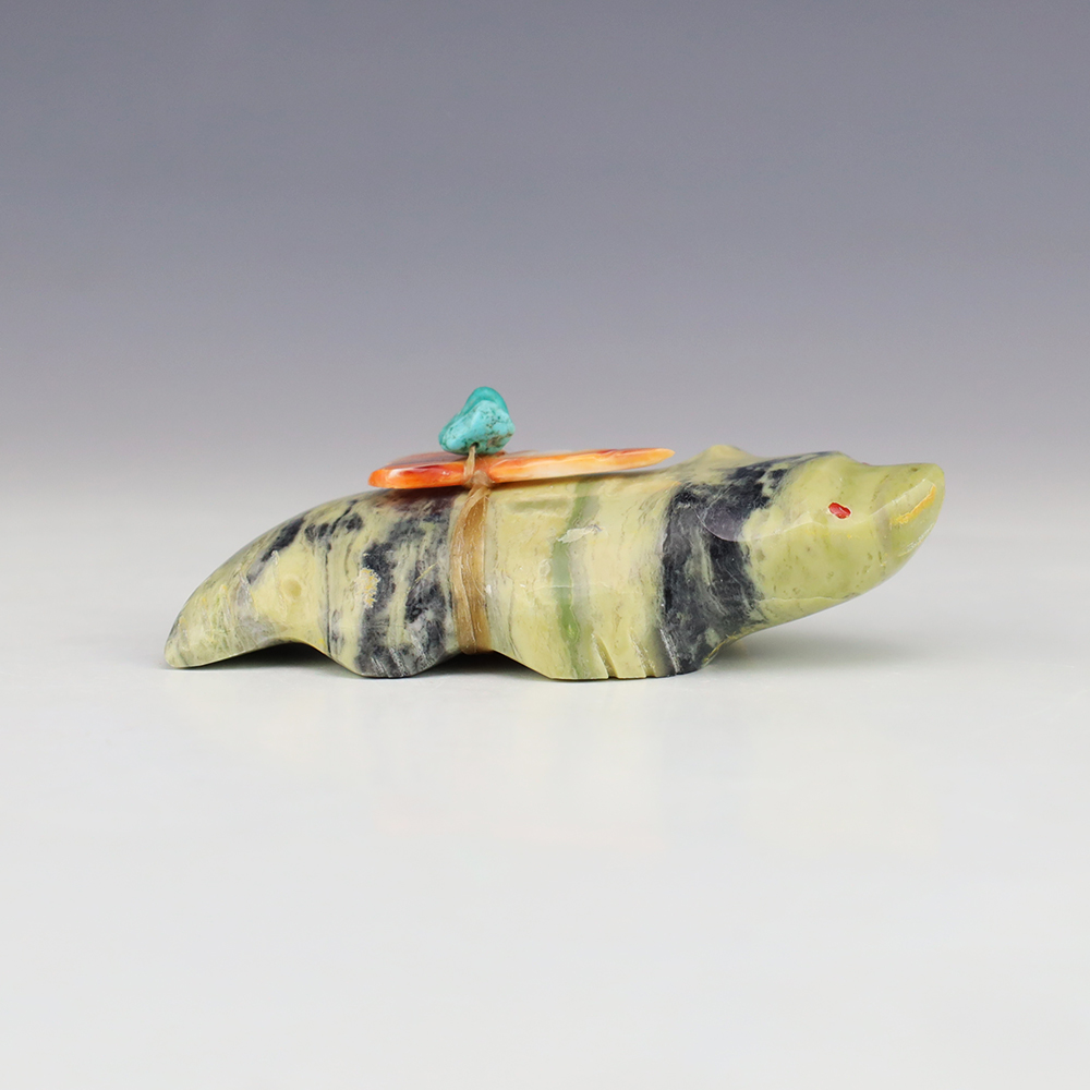 Zuni fetishes are carvings made from various materials by the Zuni people. Traditionally, fetishes served a ceremonial purpose for their creators and they represented animals and figures that were part of their culture. Today, as a form of Native American Art, they are sold to collectors worldwide. With a myriad of materials like turquoise, shell, jet, marble, serpentine, and much more, Zuni fetish carvers are able to create carvings in a style of their own.