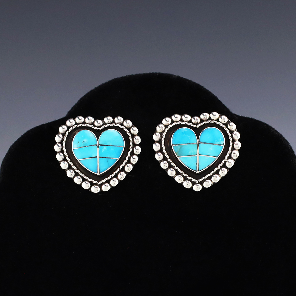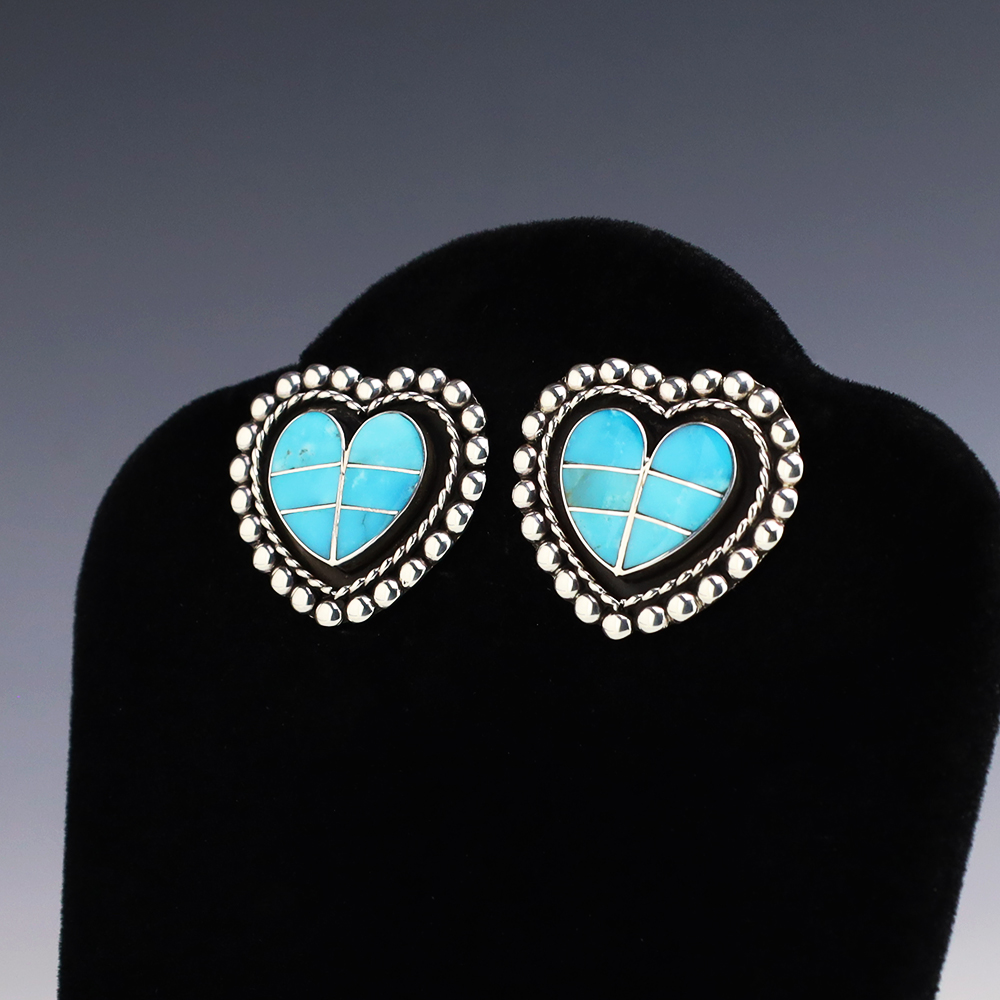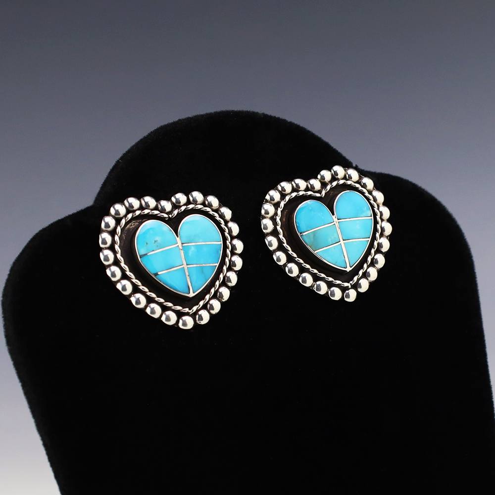 NATIVE AMERICAN ZUNI TURQUOISE EARRINGS BY NANCY & SHELDON WESTIKA