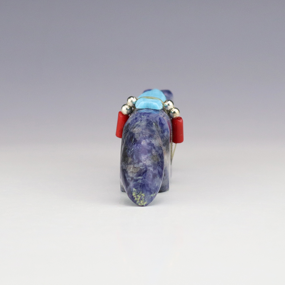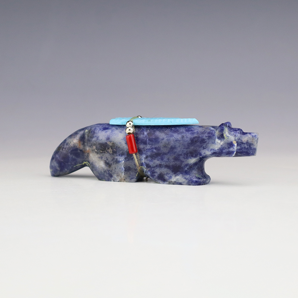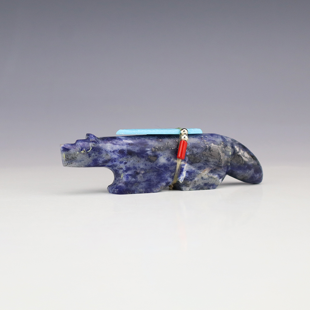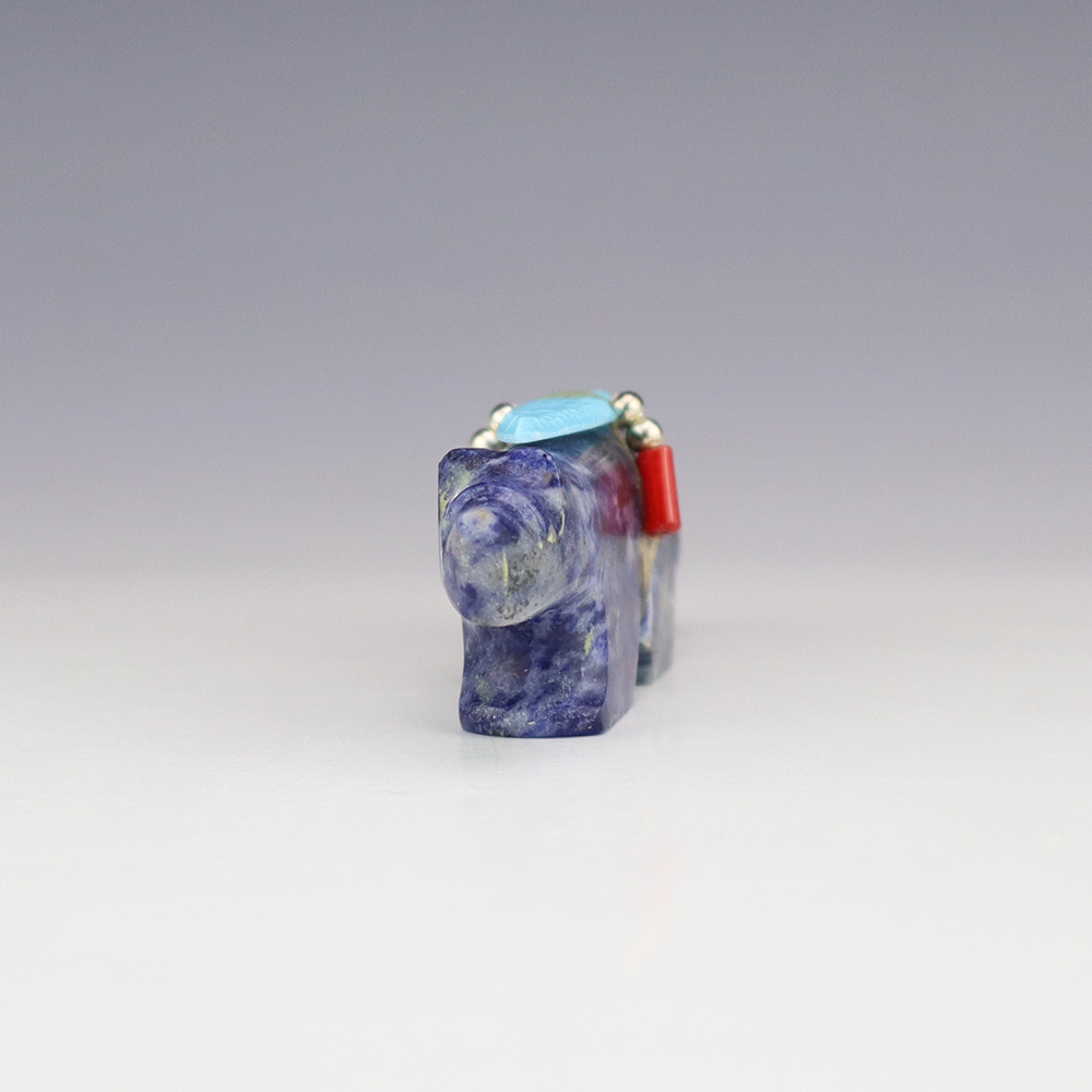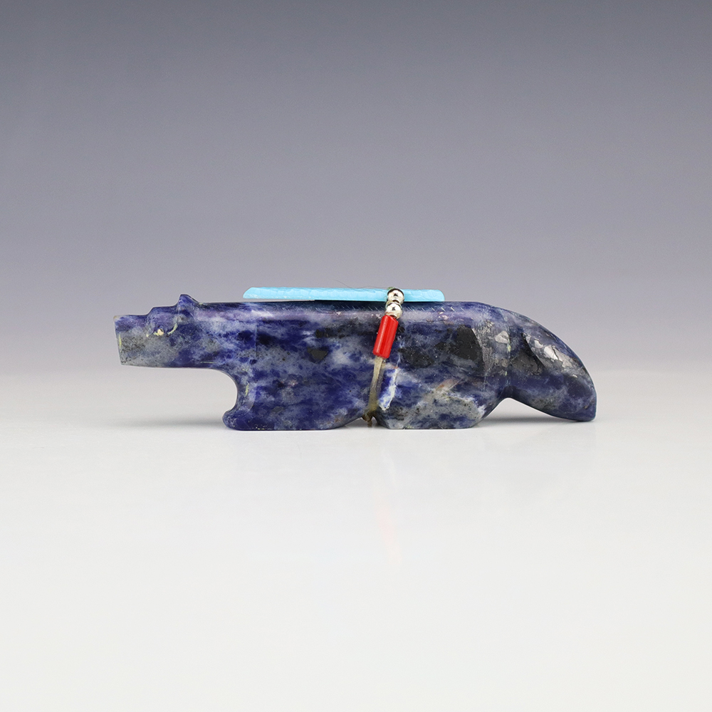 Zuni fetish carver Todd Westika carved this marvelous Wolf fetish out Sodalite and bundled with Turquoise, Coral, and silver. Wolves are the Guardian animal of the East and a powerful hunting fetish. They also represent teachers and pathfinders. A great addition to your Native American or Zuni fetish collection. Signed