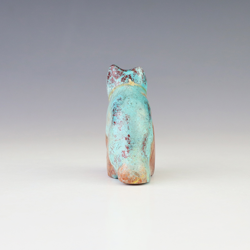 Zuni fetish carvers Leland Boone and Daphne Quam made this fabulous cat fetish out of Sonora Sunrise. A great addition to your Native American or Zuni fetish collection. (note-there is natural fracturing in the stone)