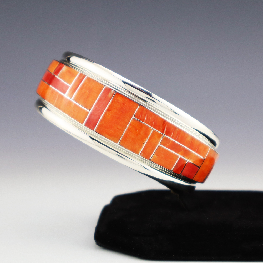 Magnificent cufflinks that feature Jet and Red Line Obsidian inlaid in a sterling silver setting. Hand made with high quality craftsmanship that is a great representation of the traditional inlay work. Hand made by Zuni jewelers Nancy and Sheldon Westika. The Westikas have been making jewelry since the 1970’s and...