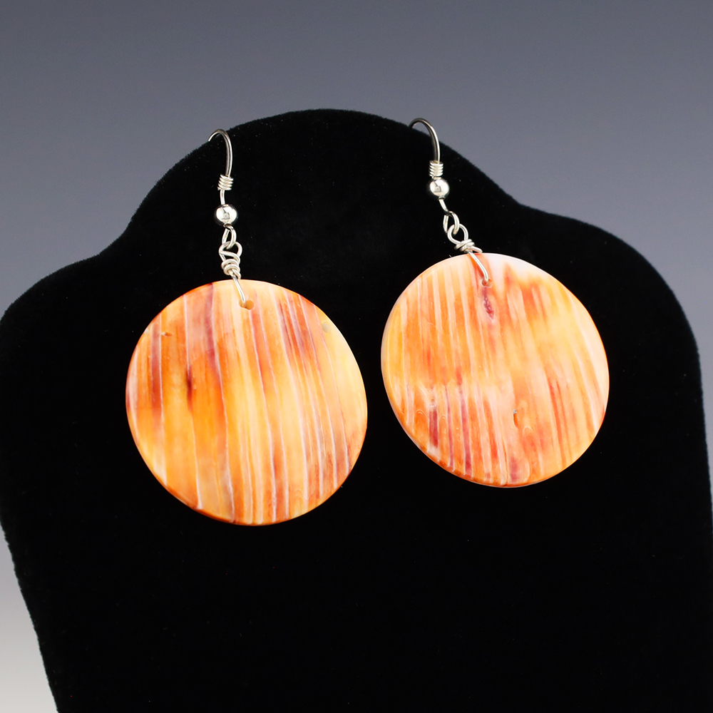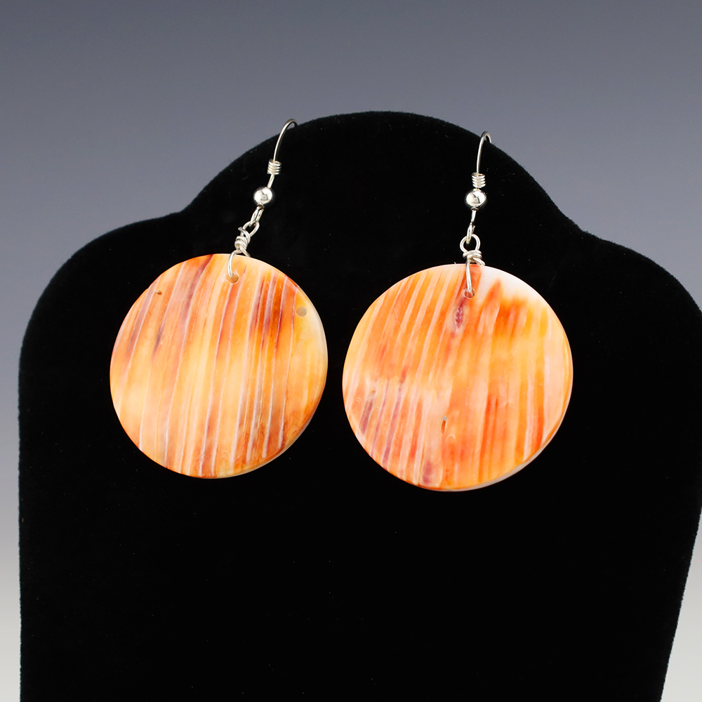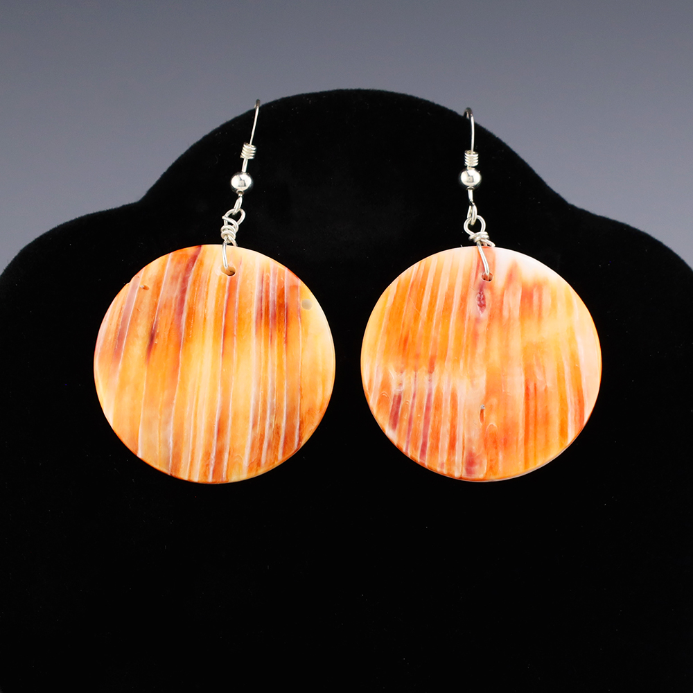 Lovely Spiny Oyster earrings made by Zuni artist Jesus Espino. These earrings will become a versatile accessory in your jewelry collection. Weighs 14 grams.