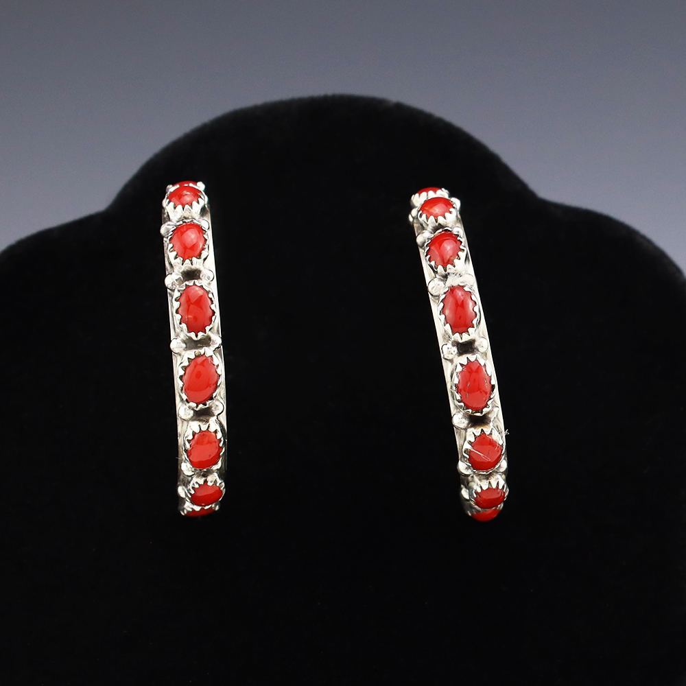 Zuni jewelry makers, Nancy and Sheldon Westika created these stunning earrings. Made out of sterling silver and inlaid with Henna Limestone and Turquoise. Zuni artists are known for their lapidary work. The Westikas have been making jewelry since the 1970’s and they are known for their fine inlay work. Weighs...