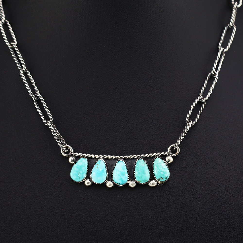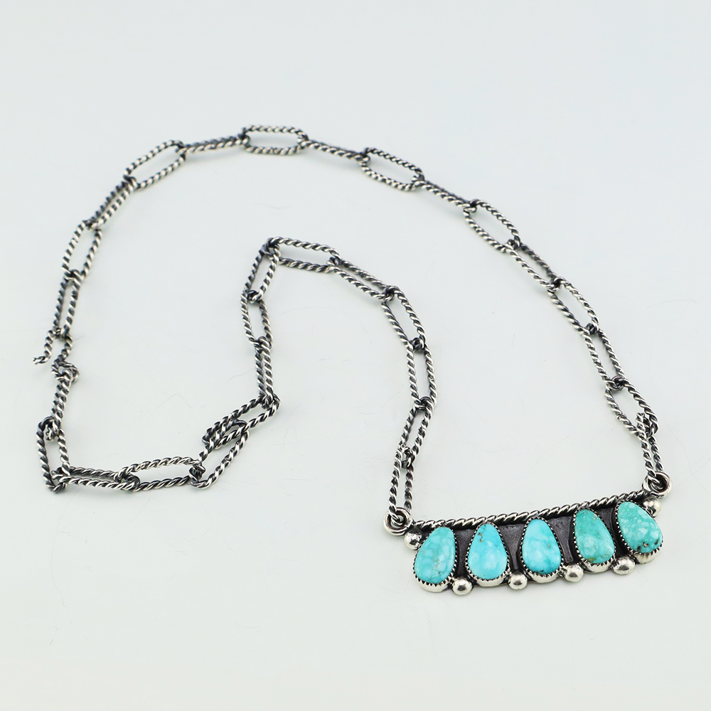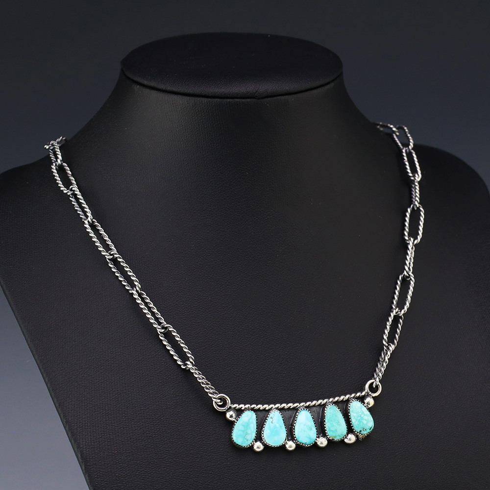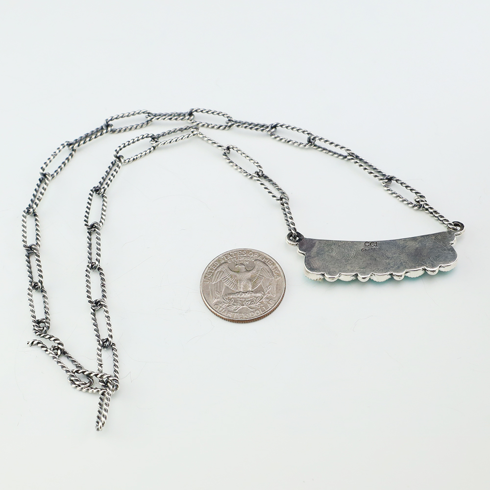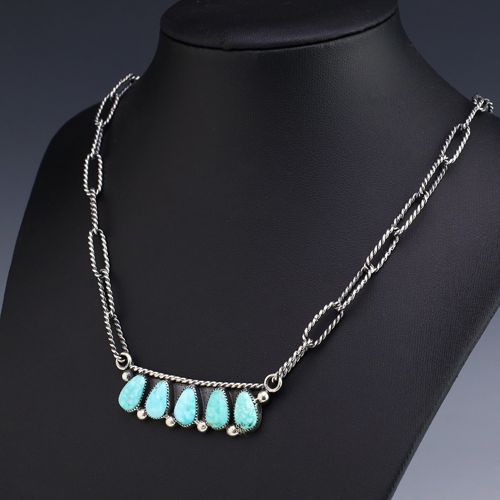NATIVE AMERICAN NAVAJO STERLING SILVER & TURQUOISE NECKLACE BY GARY CUSTER