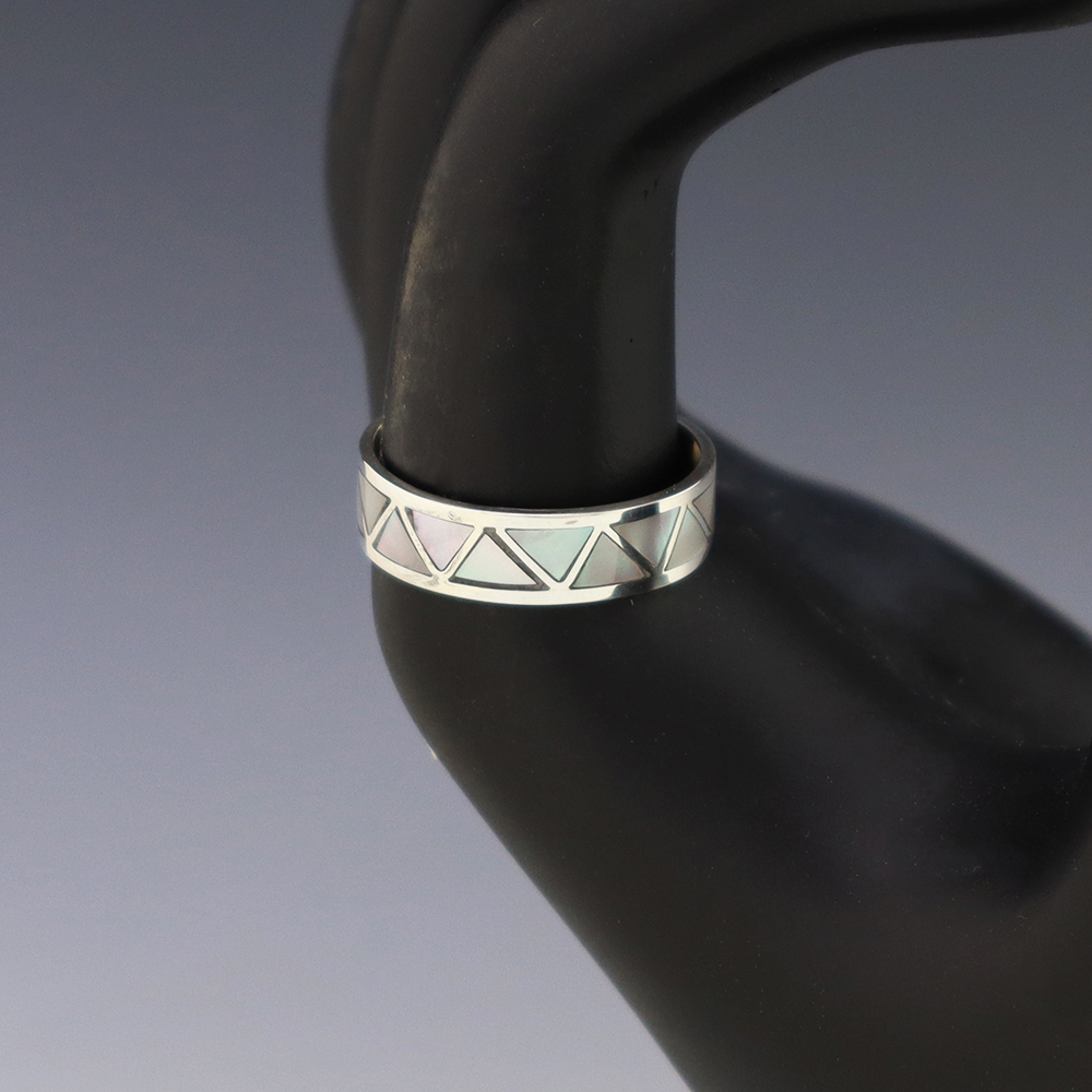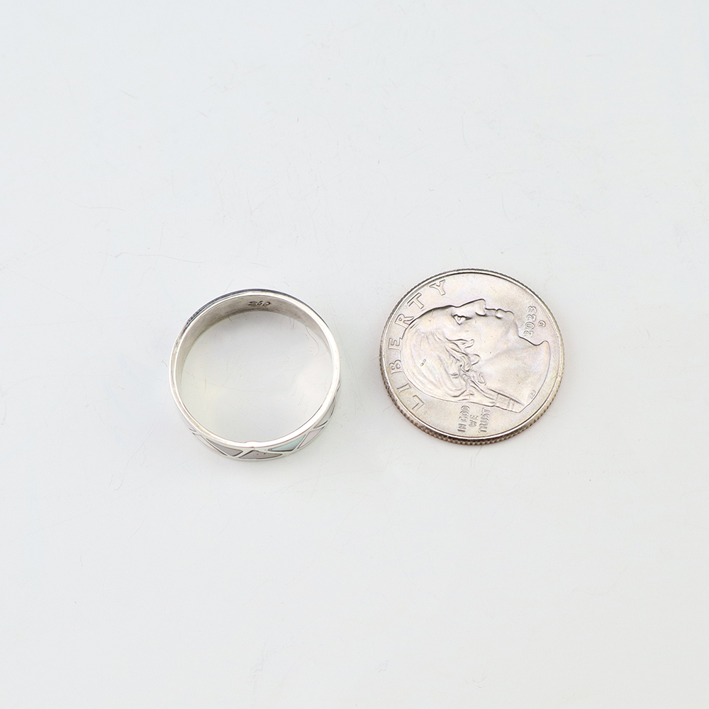 Amazing inlay work! Zuni jewelry makers, Nancy and Sheldon Westika made this stunning ring. Made out of sterling silver and inlaid with Kingman Turquoise and Jet. Zuni artists are known for their lapidary work. The Westikas have been making jewelry since the 1970’s and they are known for their fine...