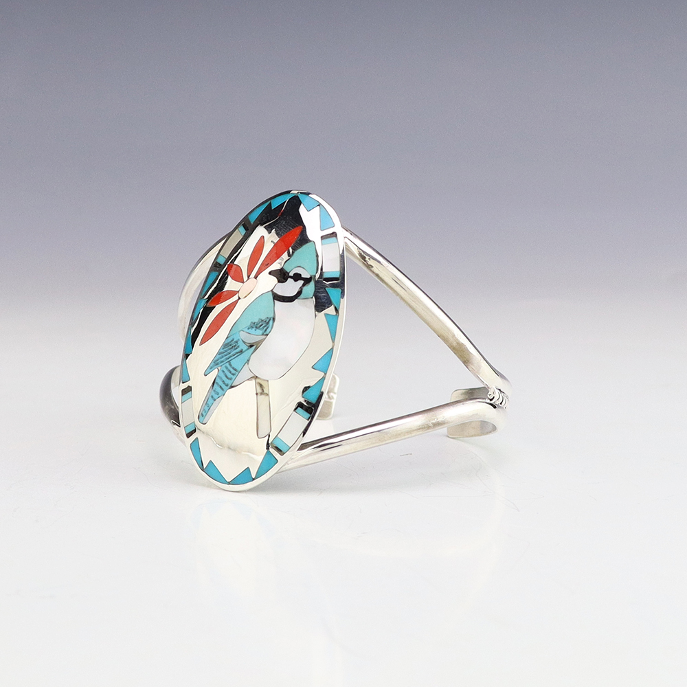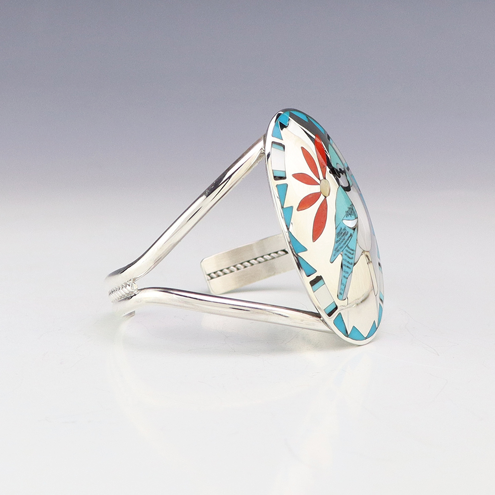 NATIVE AMERICAN ZUNI STERLING SILVER & INLAY BRACELET BY GLENDIS TSADIASI