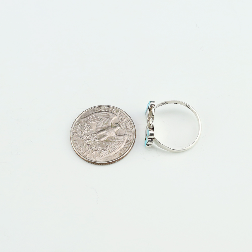 Amazing inlay work! Zuni jewelry makers, Nancy and Sheldon Westika made this stunning ring. Made out of sterling silver and inlaid with Kingman Turquoise and Jet. Zuni artists are known for their lapidary work. The Westikas have been making jewelry since the 1970’s and they are known for their fine...
