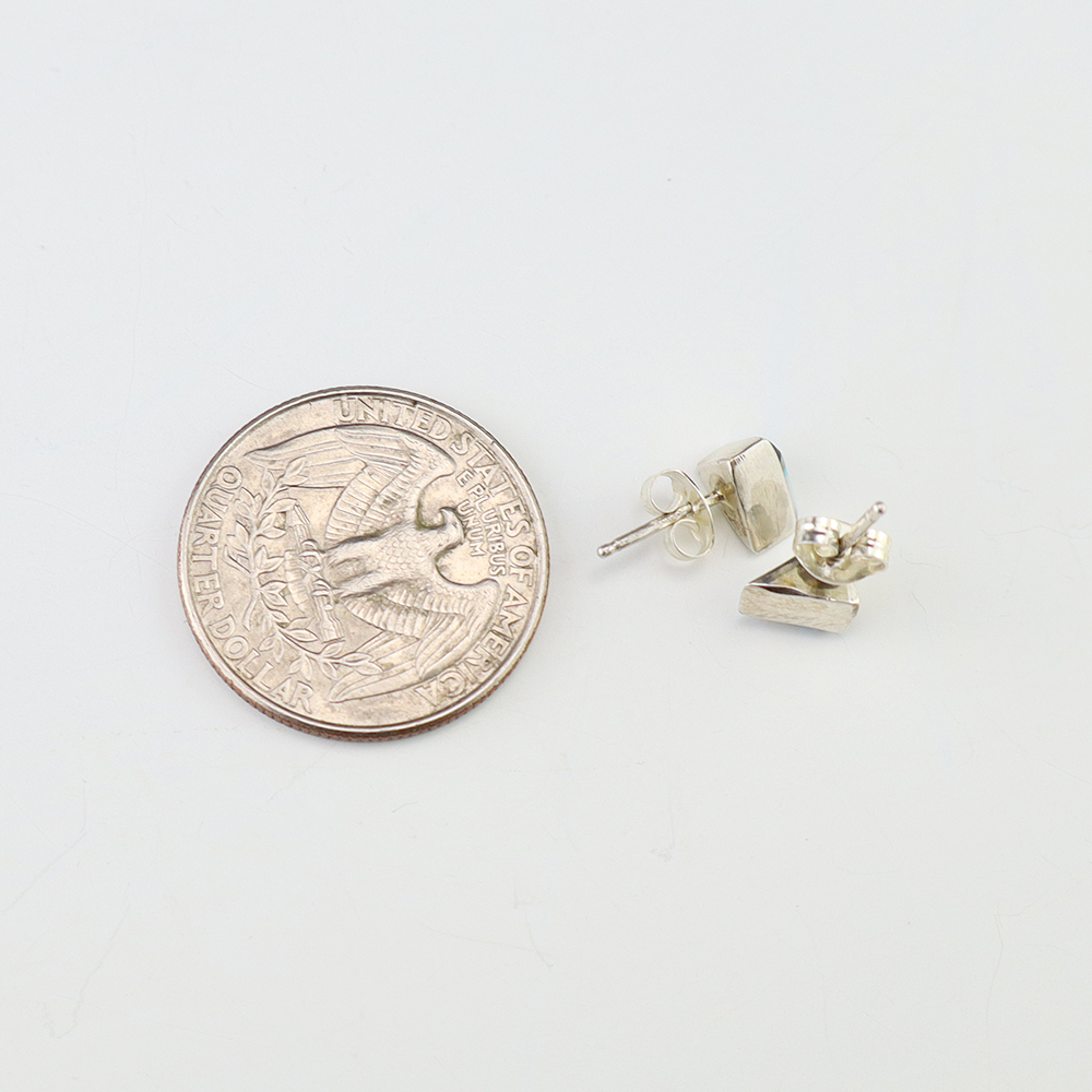 Outstanding sterling silver earrings with Mother of Pearl Shell and Turquoise inlay. Hand crafted by Zuni jewelry makers, Nancy and Sheldon Westika. The Westikas have been making jewelry since the 1970’s and they are known for their fine inlay work. Weighs 6 grams. Signed 7/8” wide x 7/8” tall 1 ...