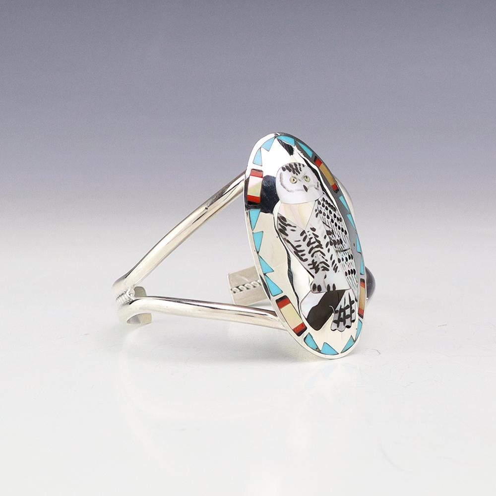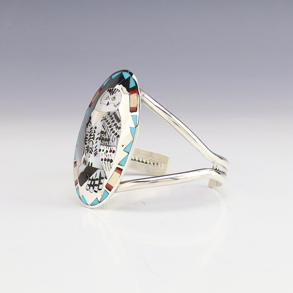 NATIVE AMERICAN ZUNI STERLING SILVER & INLAY BRACELET BY GLENDIS TSADIASI