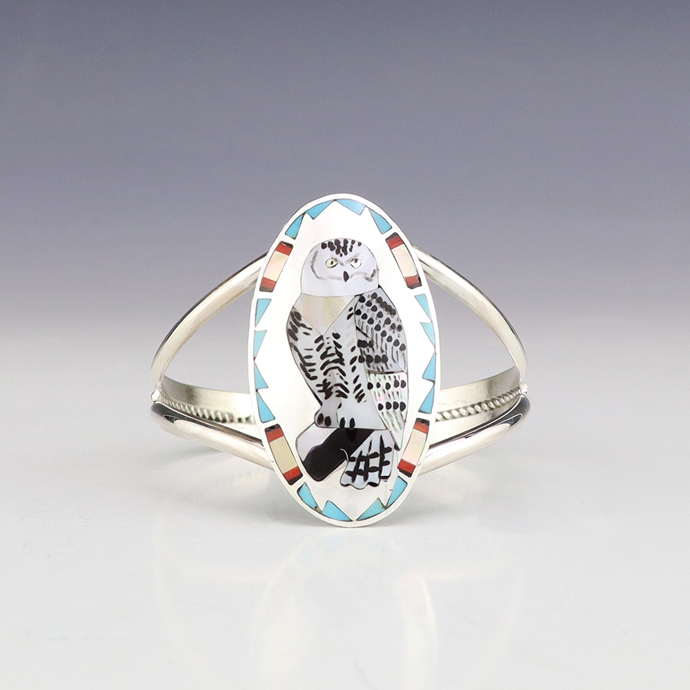 NATIVE AMERICAN ZUNI STERLING SILVER & INLAY BRACELET BY GLENDIS TSADIASI