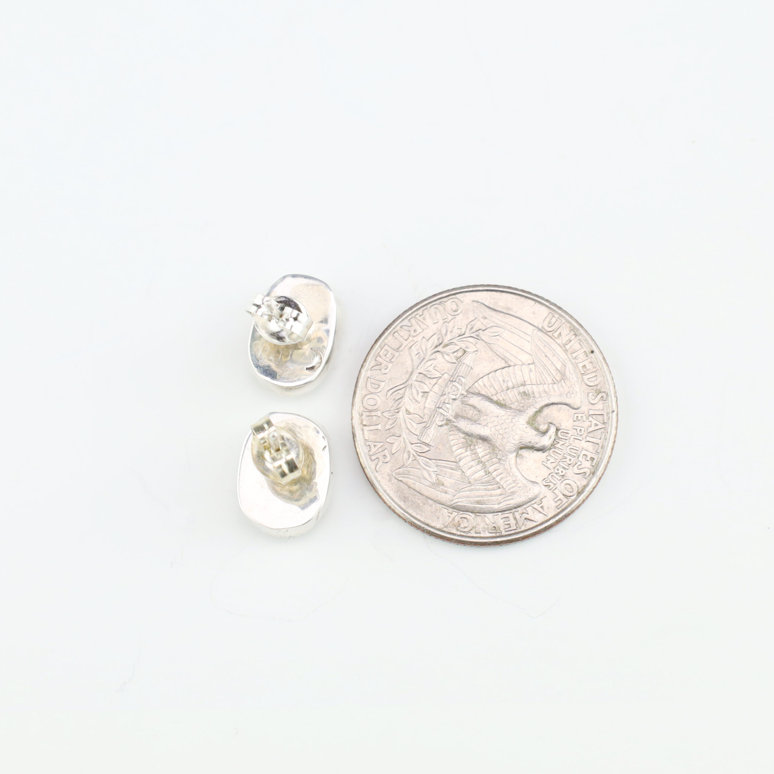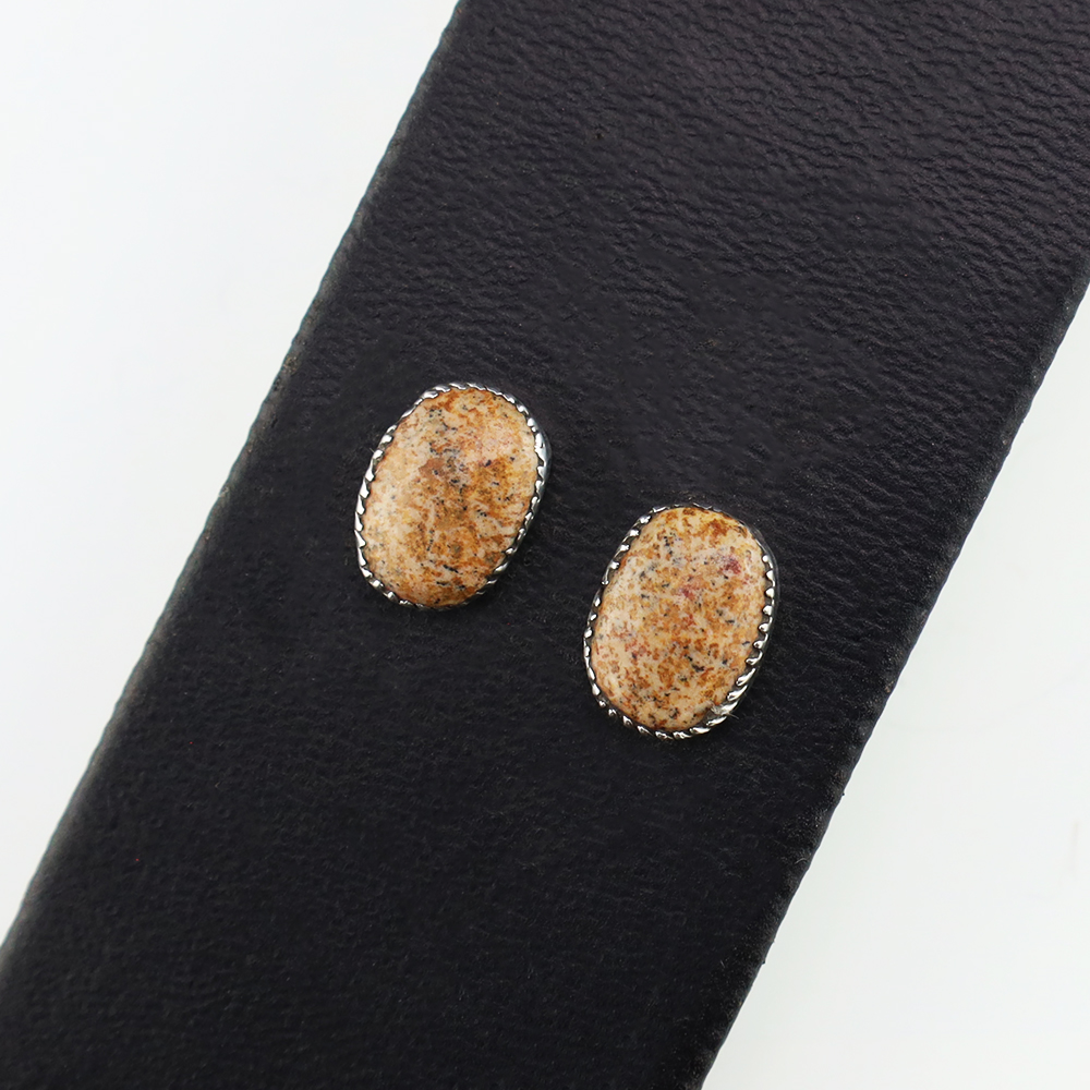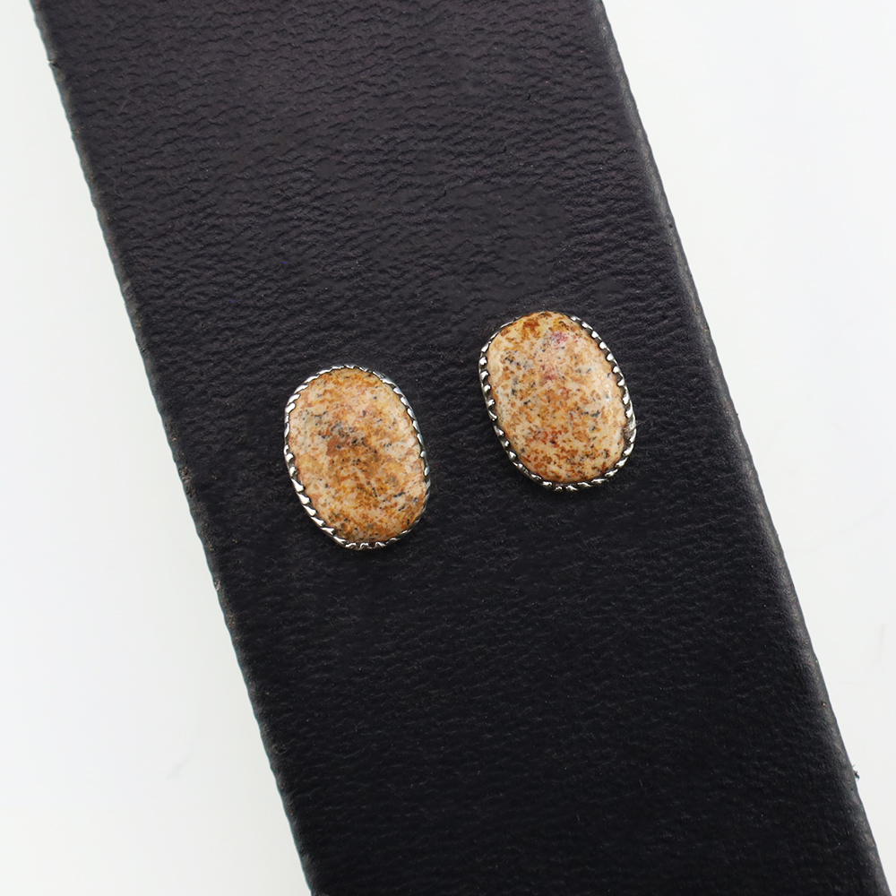 Zuni artist, Diane Lonjose created these lovely earrings. Made out of sterling silver and set with Jasper. The components are all hand fabricated and the stones are all natural. Diane comes from a family of Zuni jewelers. She is the daughter of Alice and Duane Quam, and grandchild of Doris and Wayne Ondelacy. Weighs 2 gram. Signed