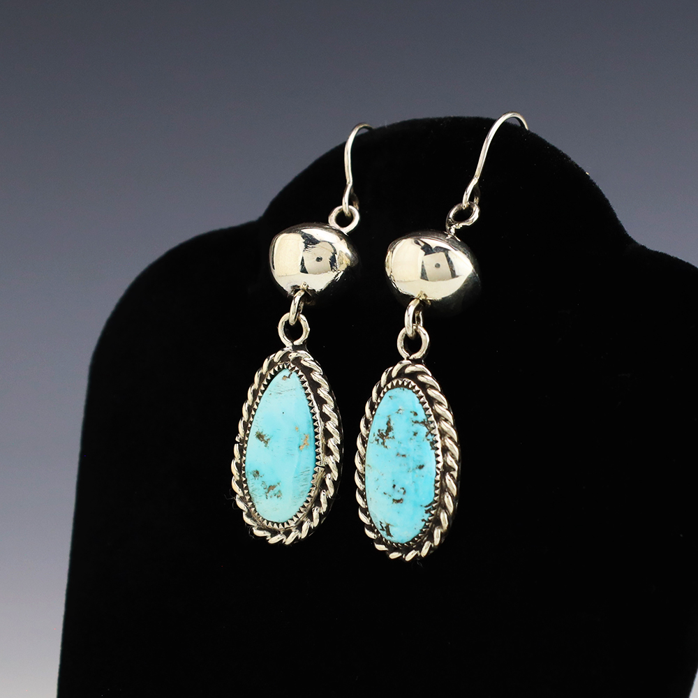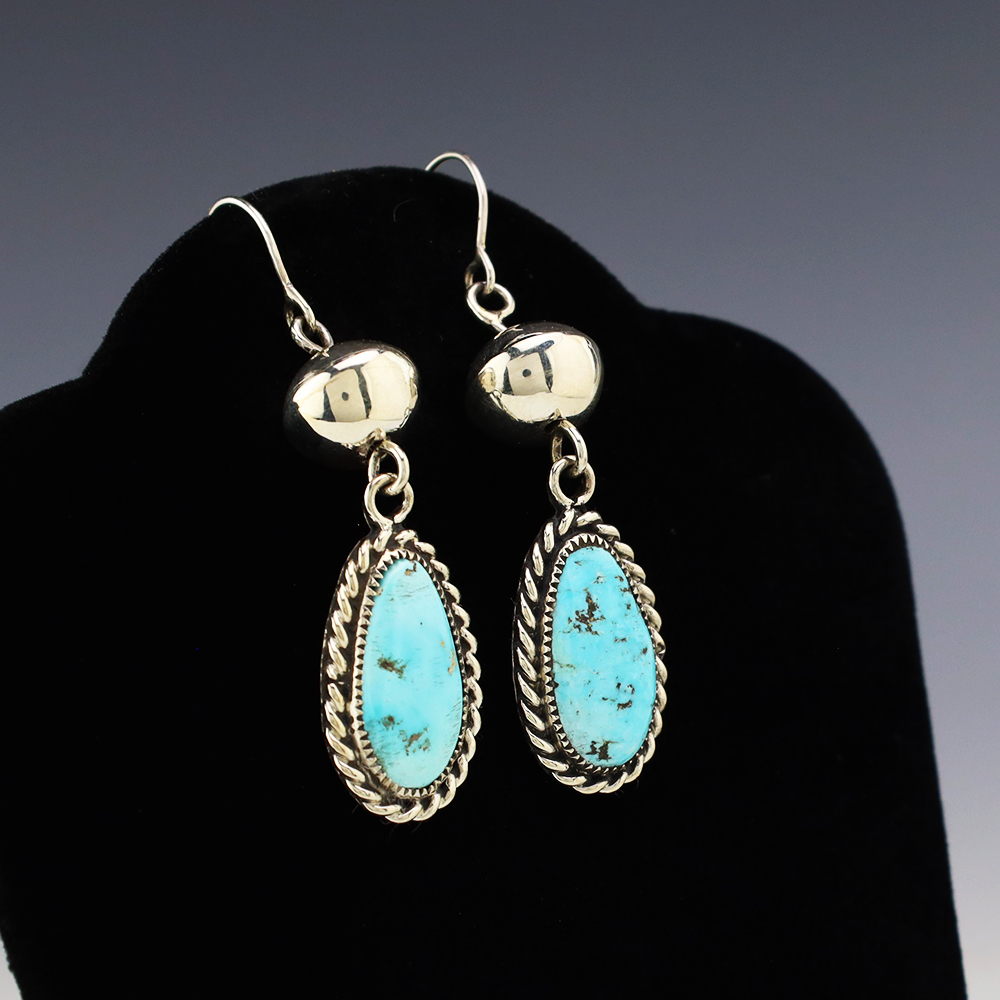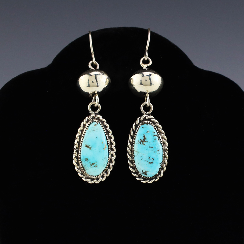 NATIVE AMERICAN ZUNI TURQUOISE EARRINGS BY NANCY & SHELDON WESTIKA