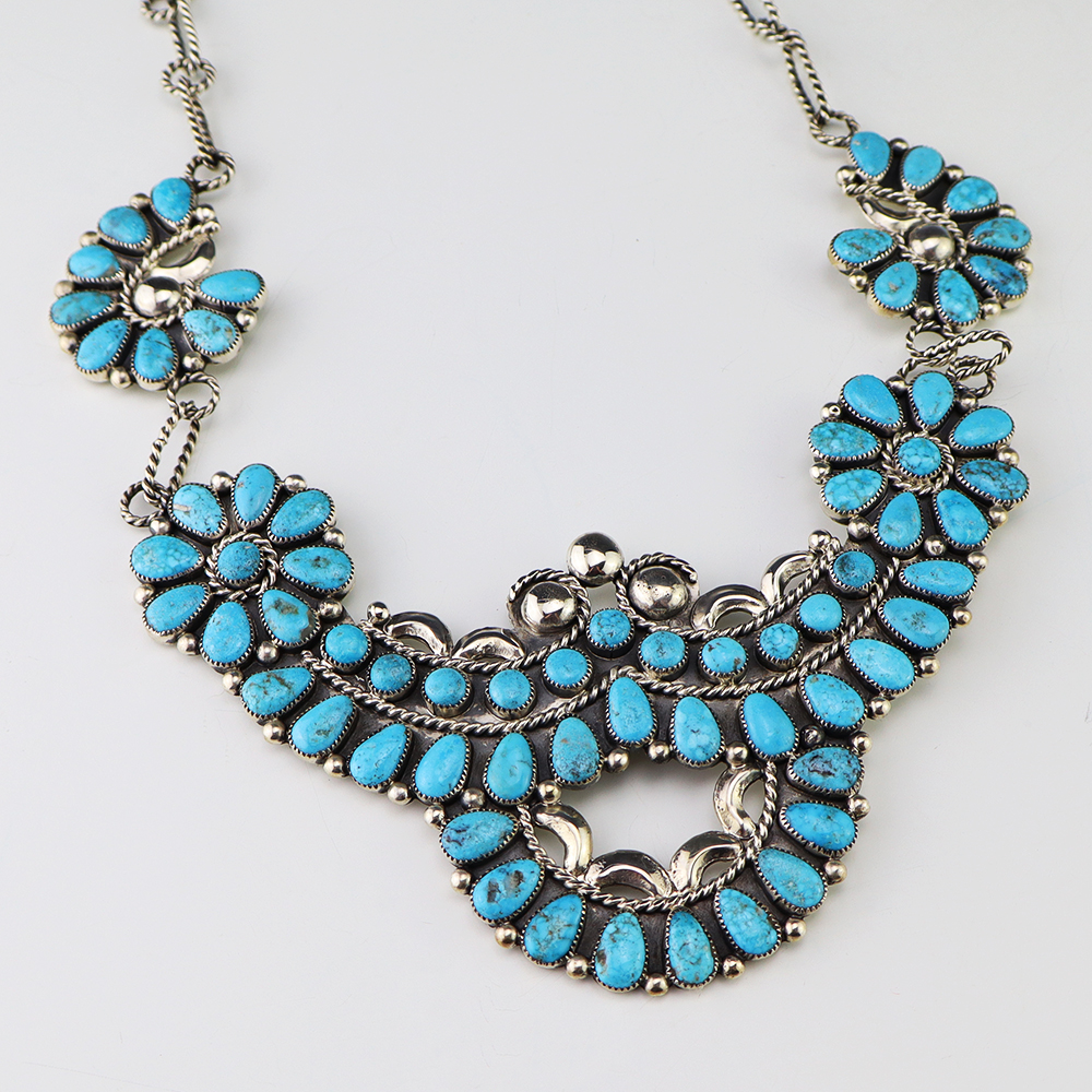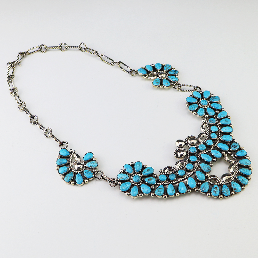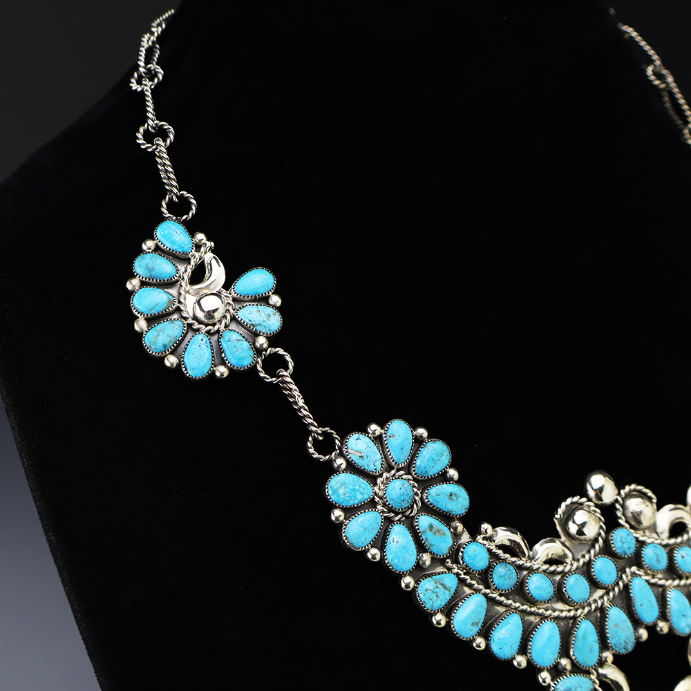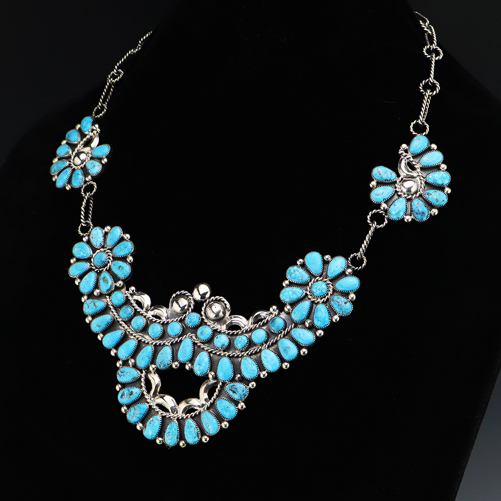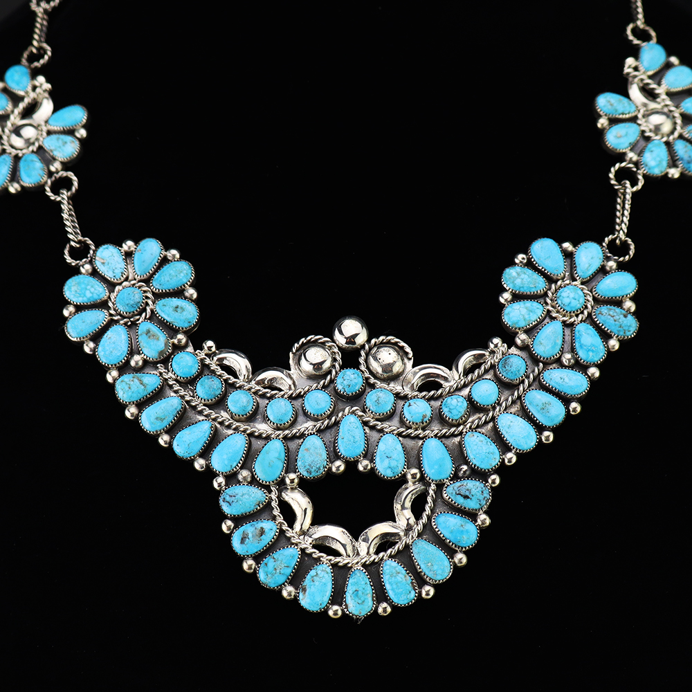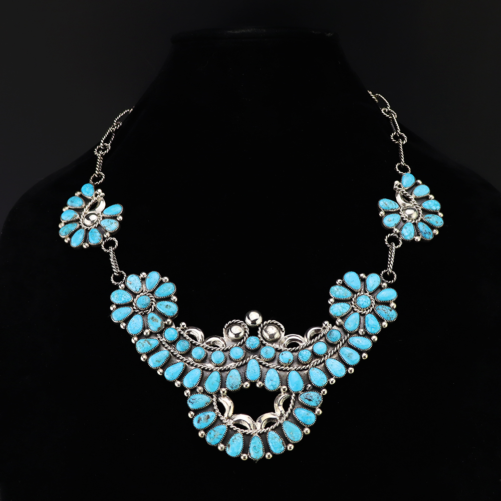 Zuni Pueblo is the largest pueblo in New Mexico, and because of its location, Zuni is the most traditional. Continuing to make jewelry, fetishes, and pottery, most of the people of Zuni are artists. Zuni jewelry makers are known for lapidary skills including inlay, needlepoint, and petit point work.